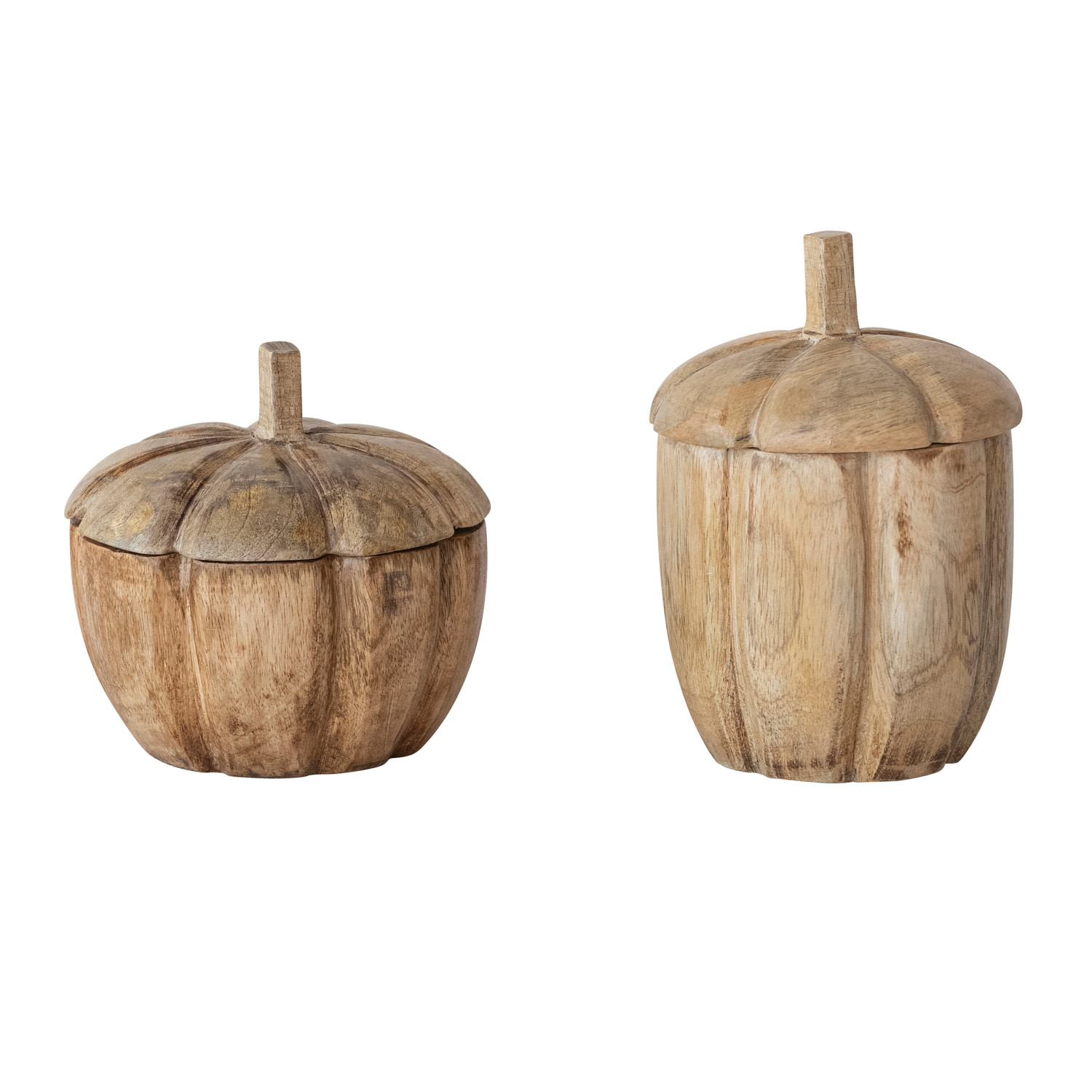 Catalog Name: 4-1/2" Round x 6-1/2"H Hand-Carved Mango Wood Pumpkin Shaped Container w/ Lid, Natural