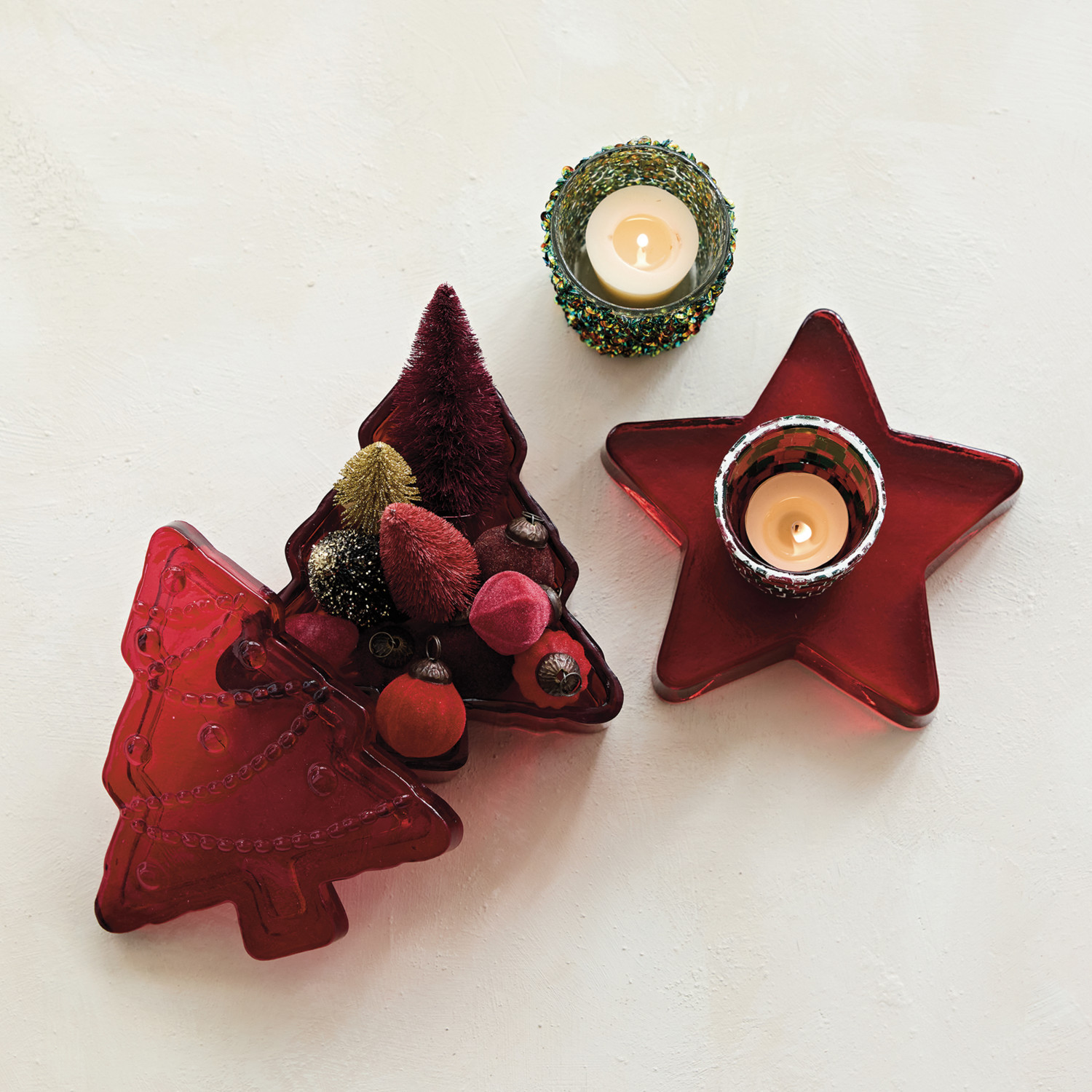 Pressed Tree Shaped Container with Lid, Red