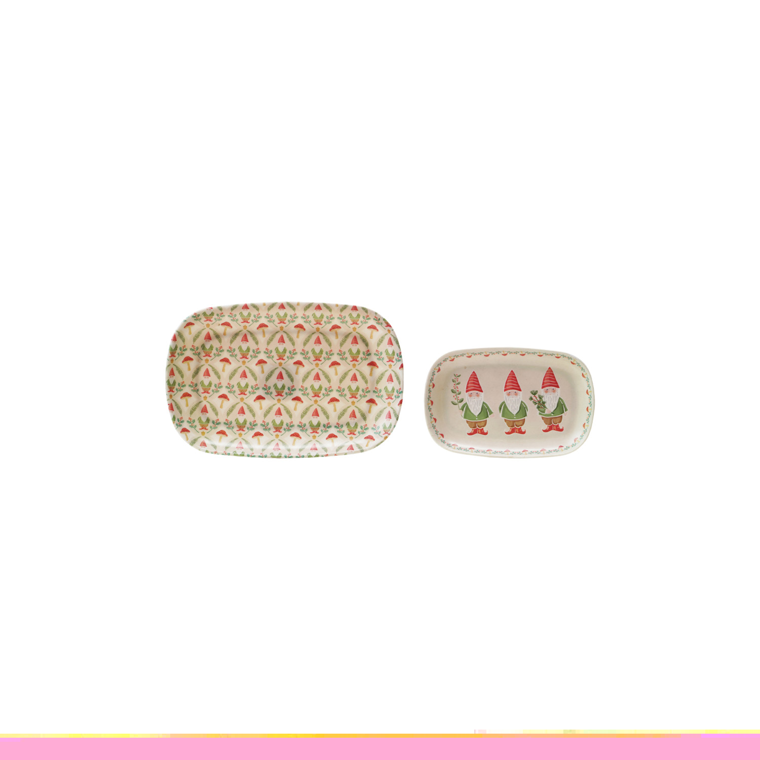 Catalog Name: 9"L x 6"W & 8"L x 5-1/4"W Bamboo Fiber Tray w/ Woodland Holiday Image/Patterns, Multi Color, Set of 2 ©