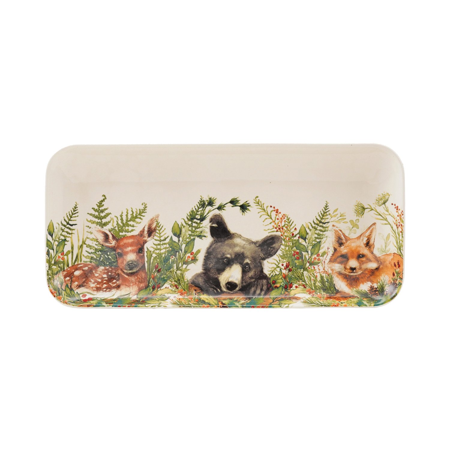 Catalog Name: 12"L x 6"W Stoneware Platter w/ Woodland Animals & Seasonal Botanicals, Multi Color ©