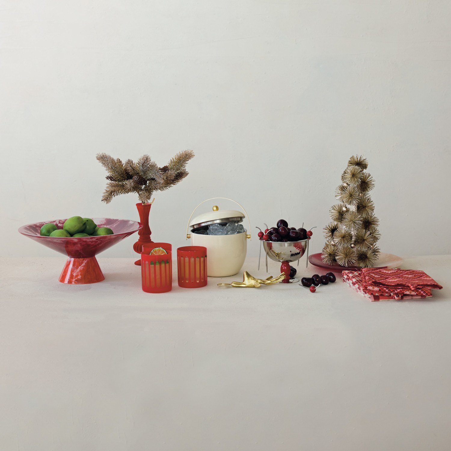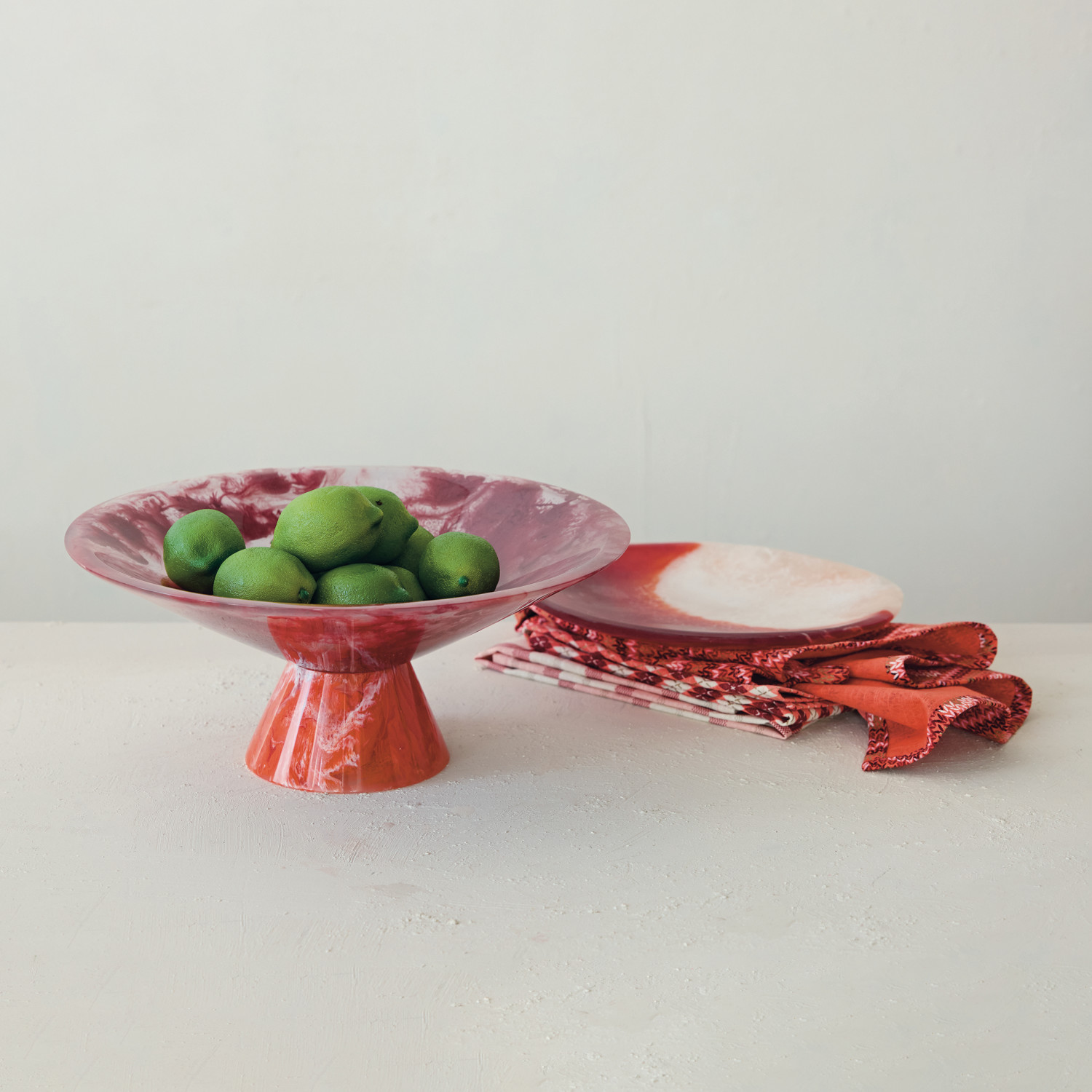Two-Tone Marbled Resin Organic Shaped Platter, Matte Red & White (Each One Will Vary)