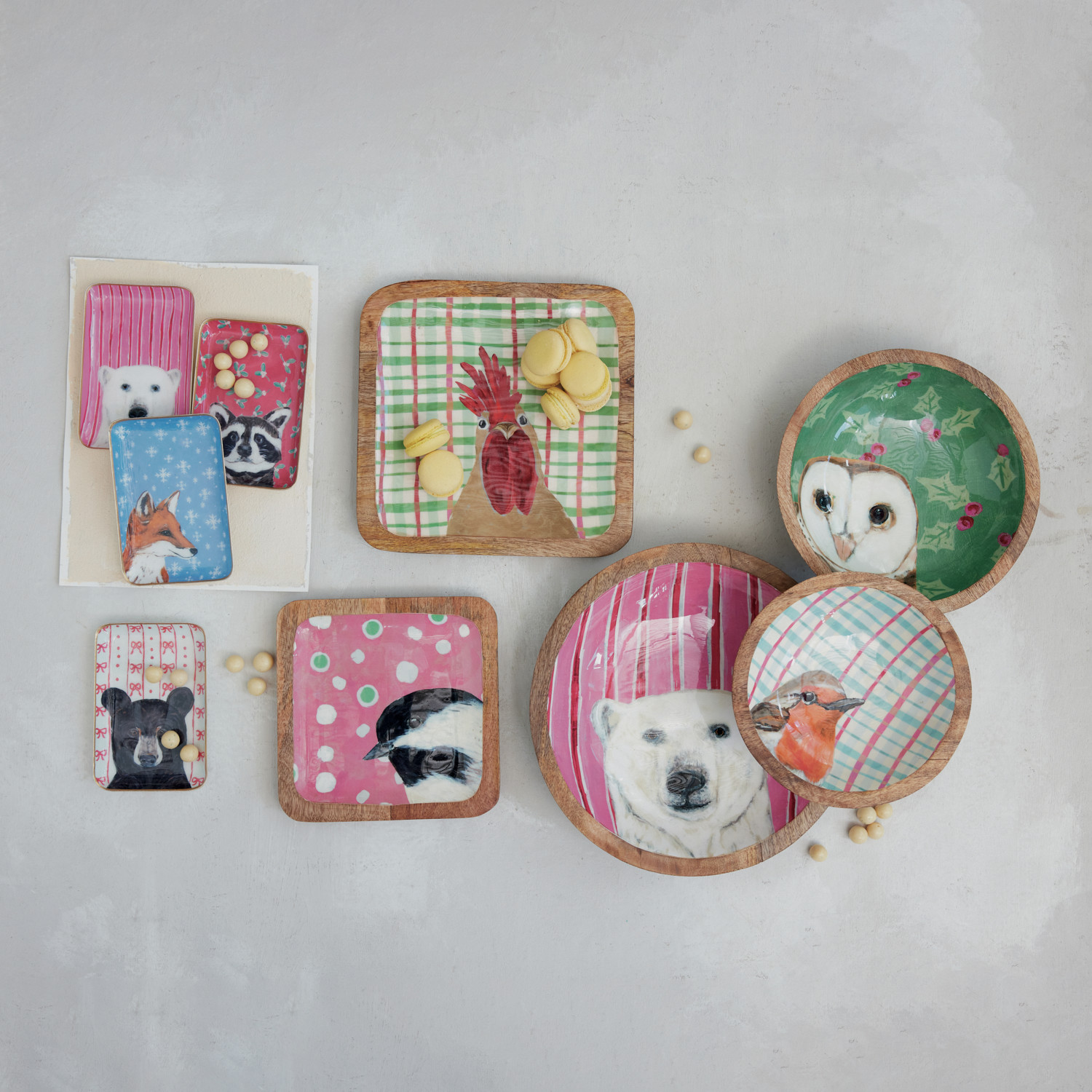 Enameled Metal Tray with Holiday Pattern, Animal & Gold Edge, 4 Styles ©