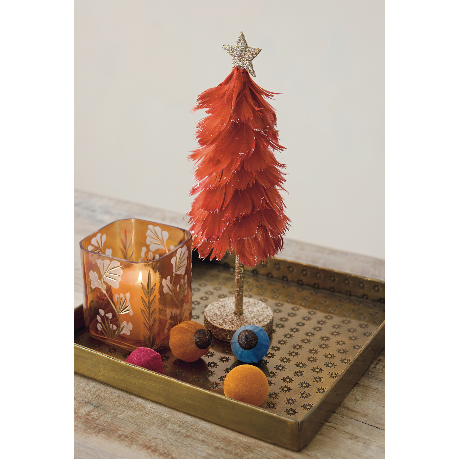 Catalog Name: 9-1/2" Square Debossed Aluminum Tray, Antique Brass Finish
