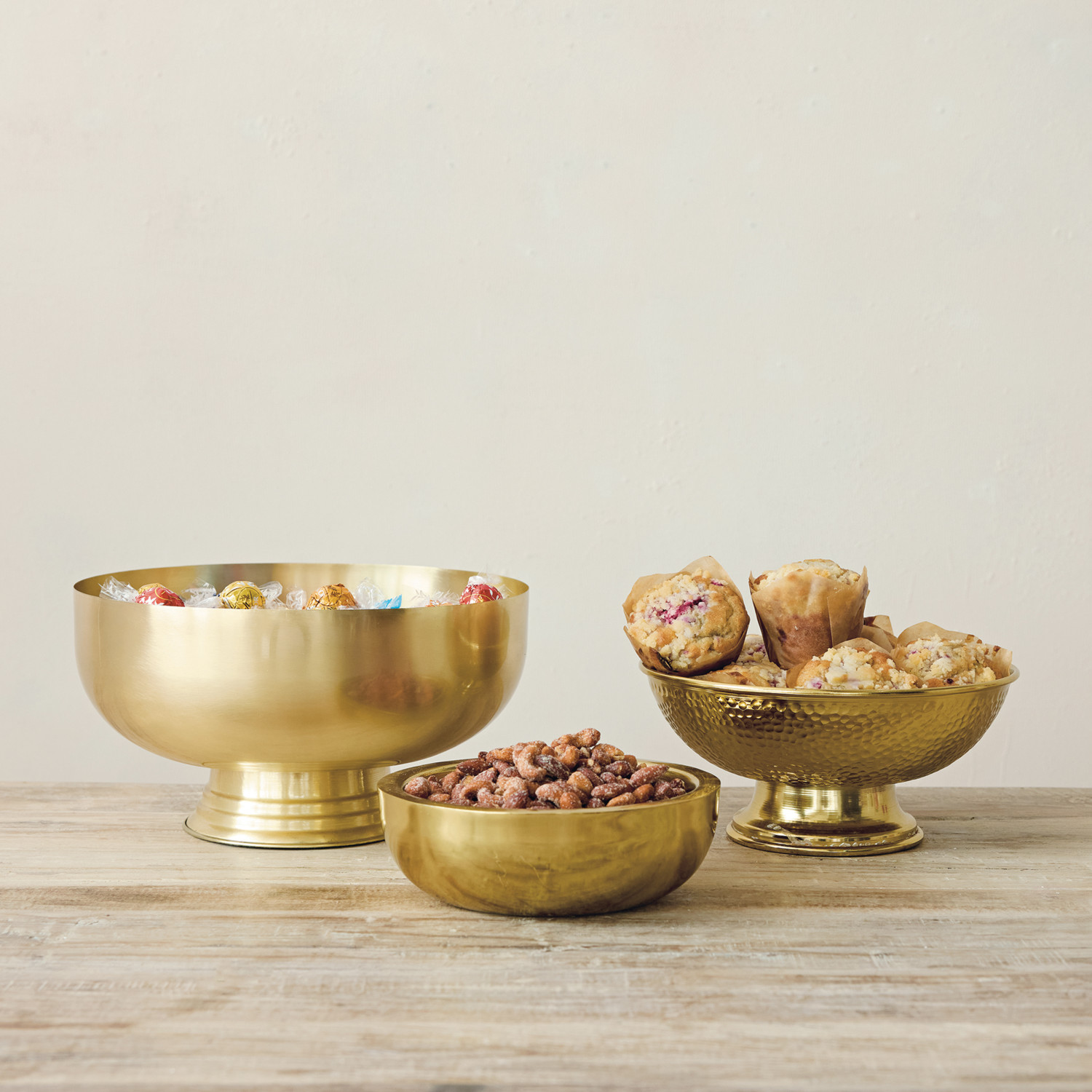 Catalog Name: 12" Round x 6-1/2"H Metal Footed Bowl, Matte Gold Finish