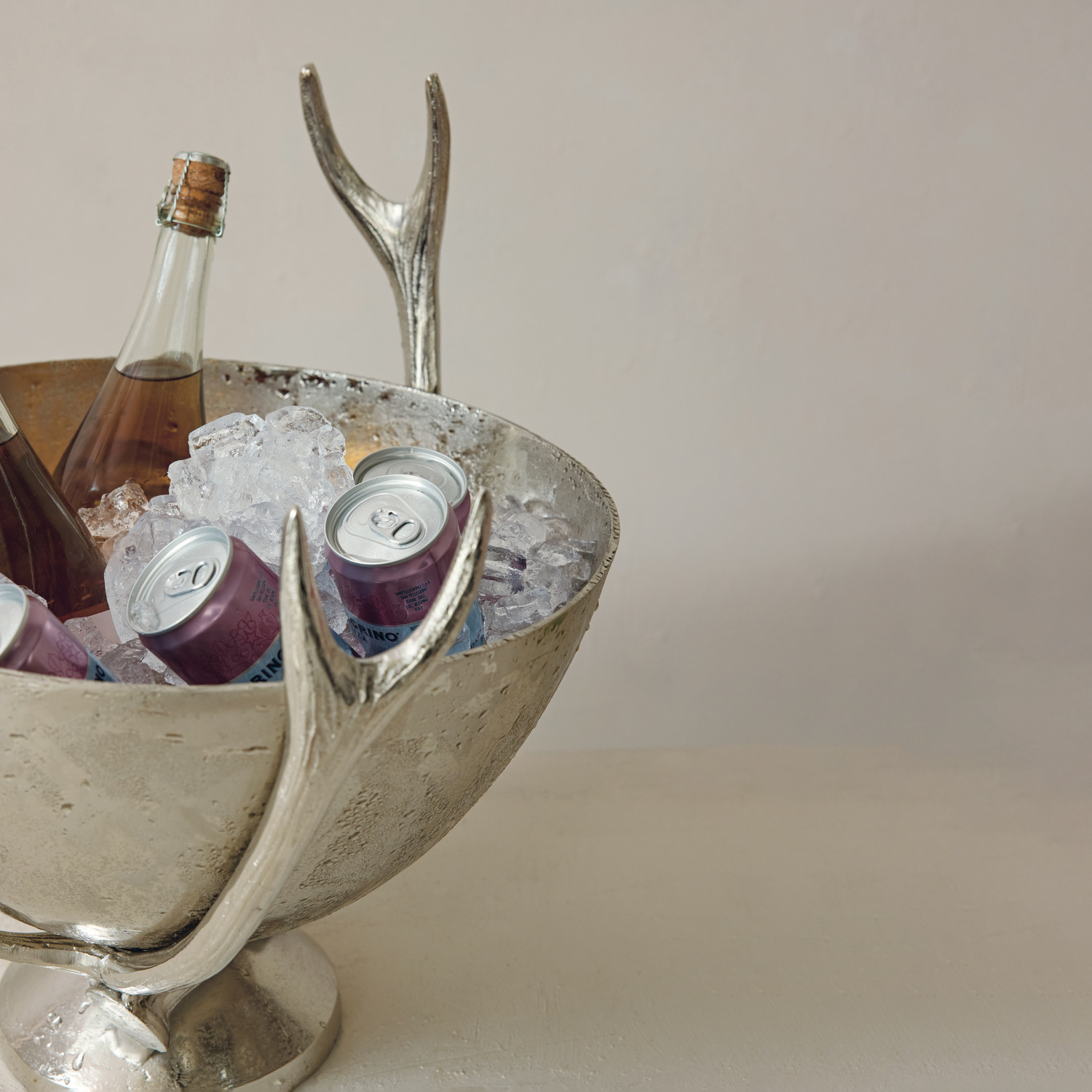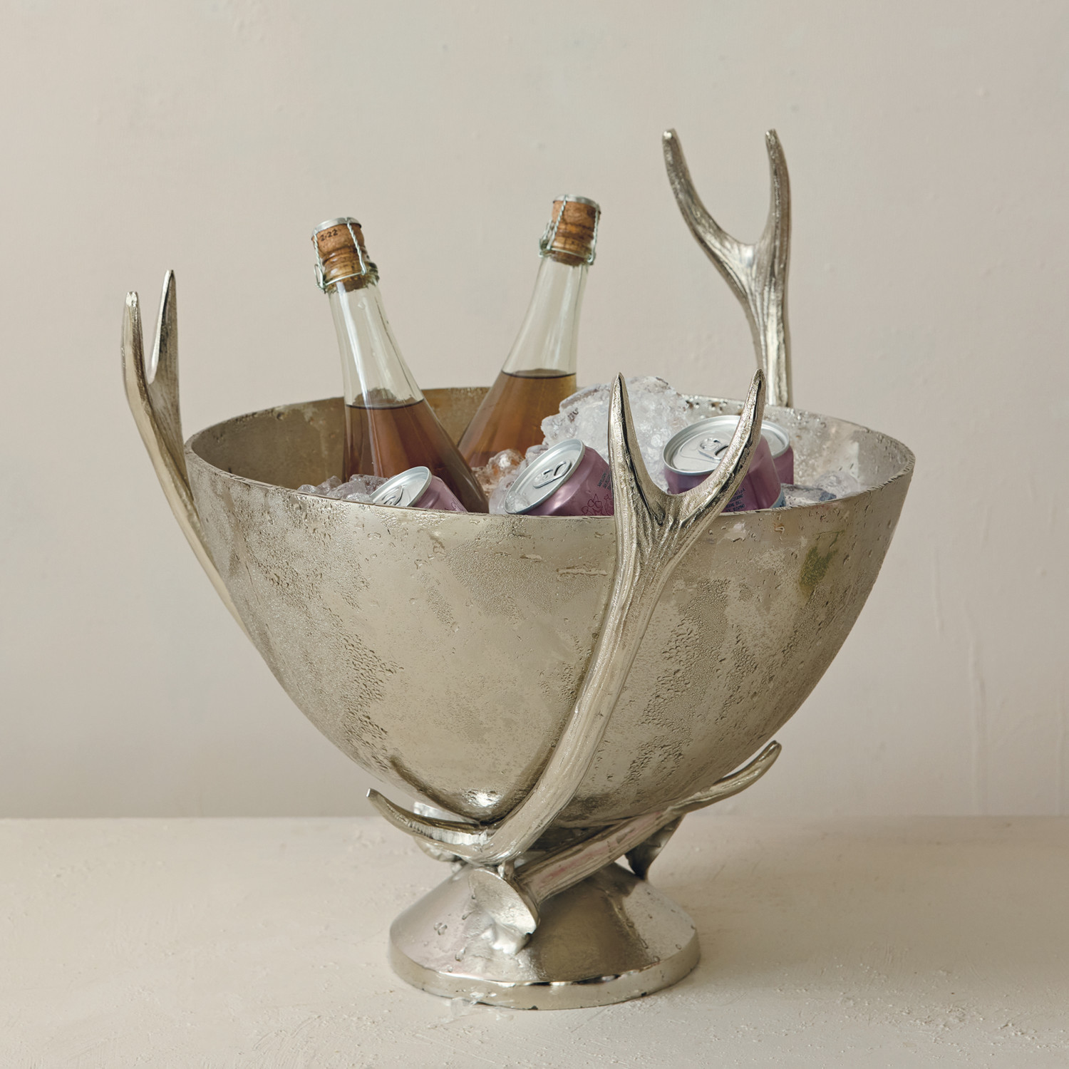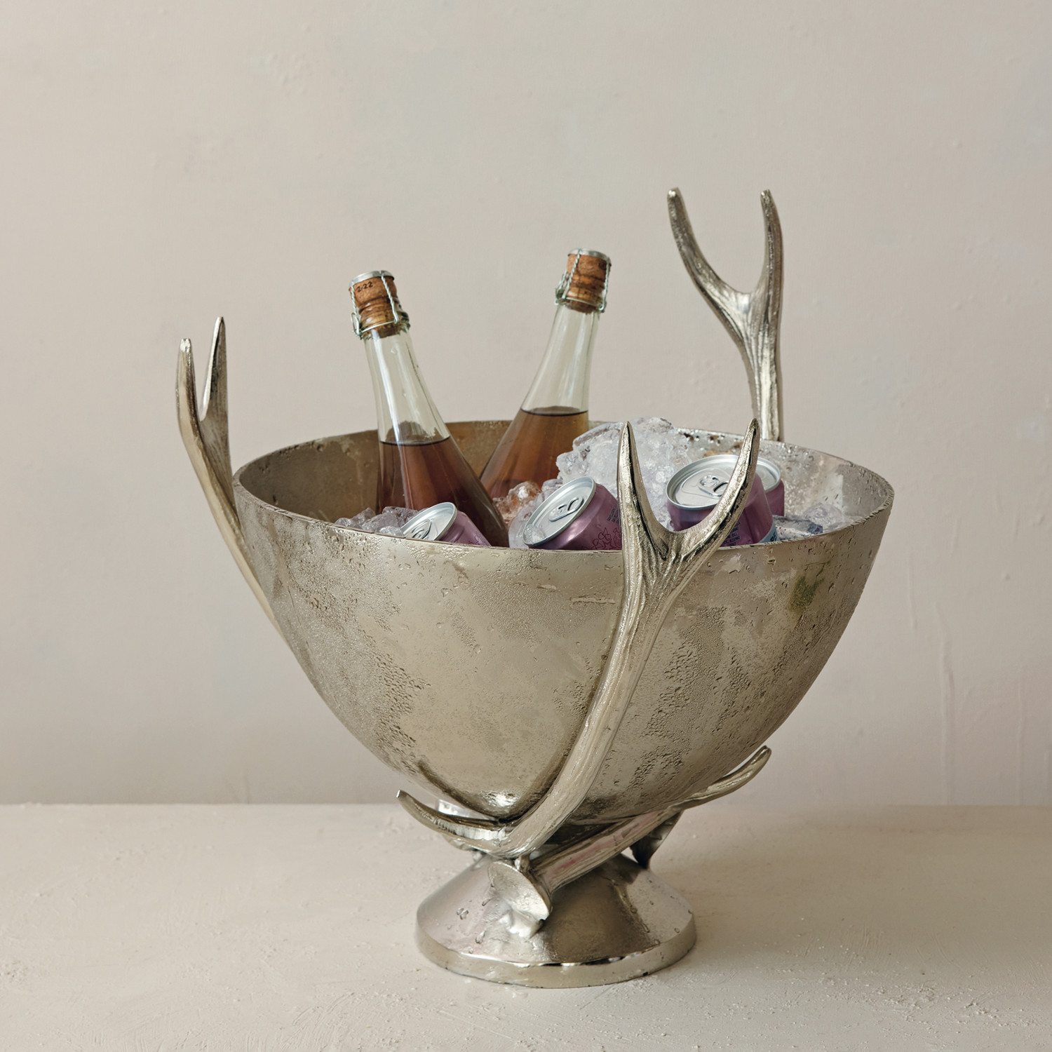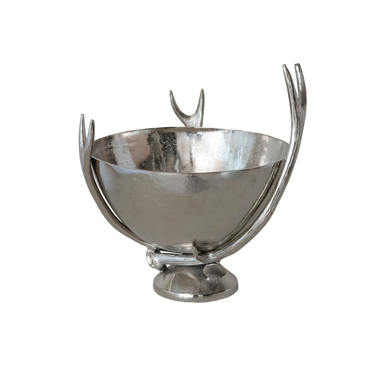 Catalog Name: 17" Round x 17-1/2"H Cast Aluminum Antler Shaped Stand w/ Removable Bowl, Nickel Finish, Set of 2