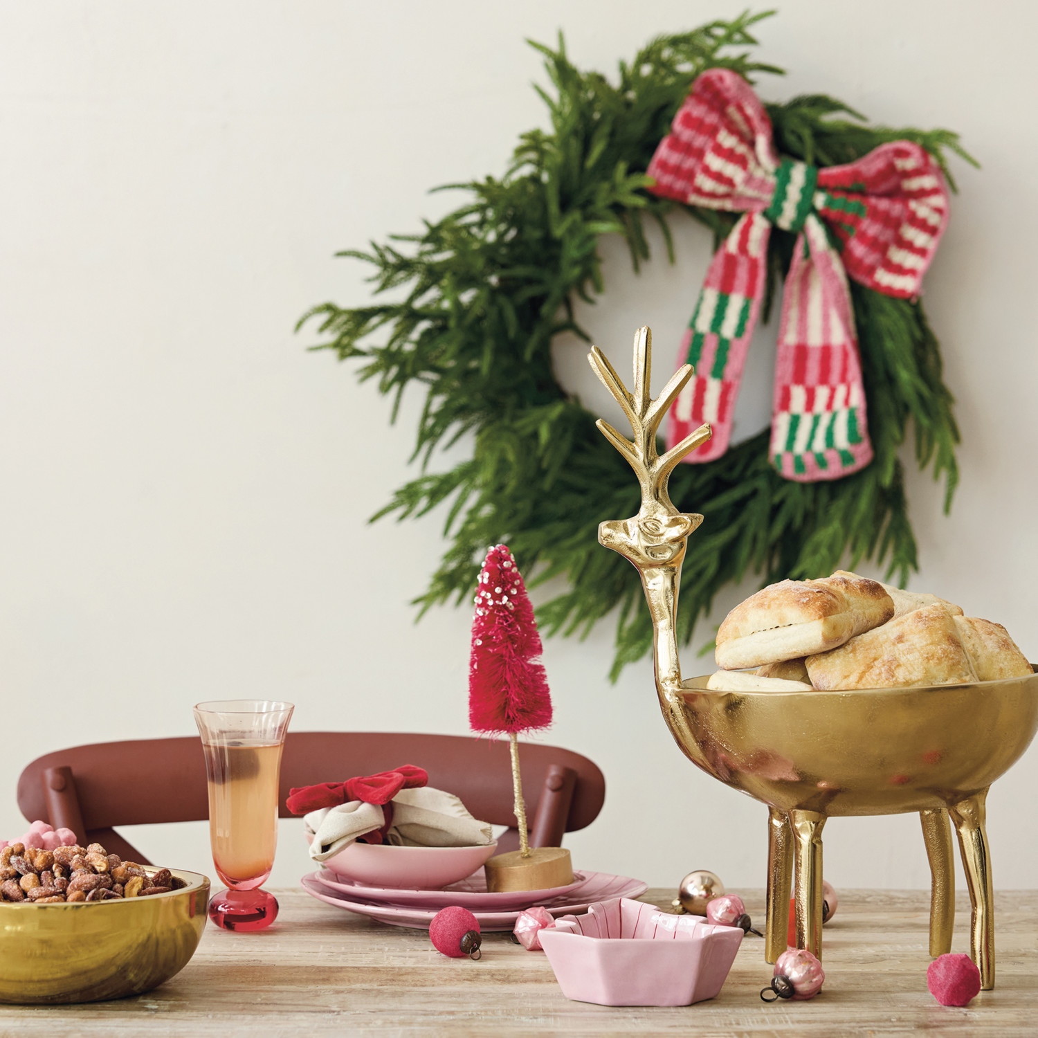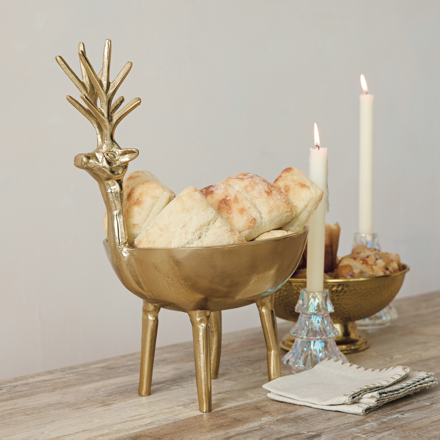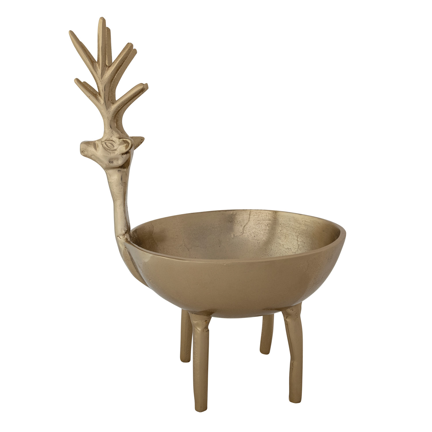 Catalog Name: 12-3/4"L x 9-3/4"W x 16-3/4"H Cast Aluminum Deer Shaped Bowl, Gold Finish