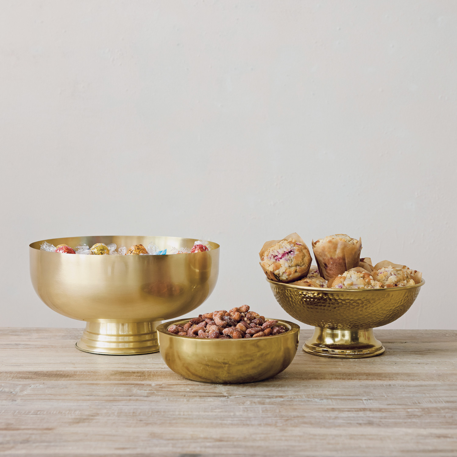 Hammered Metal Footed Bowl, Gold Finish
