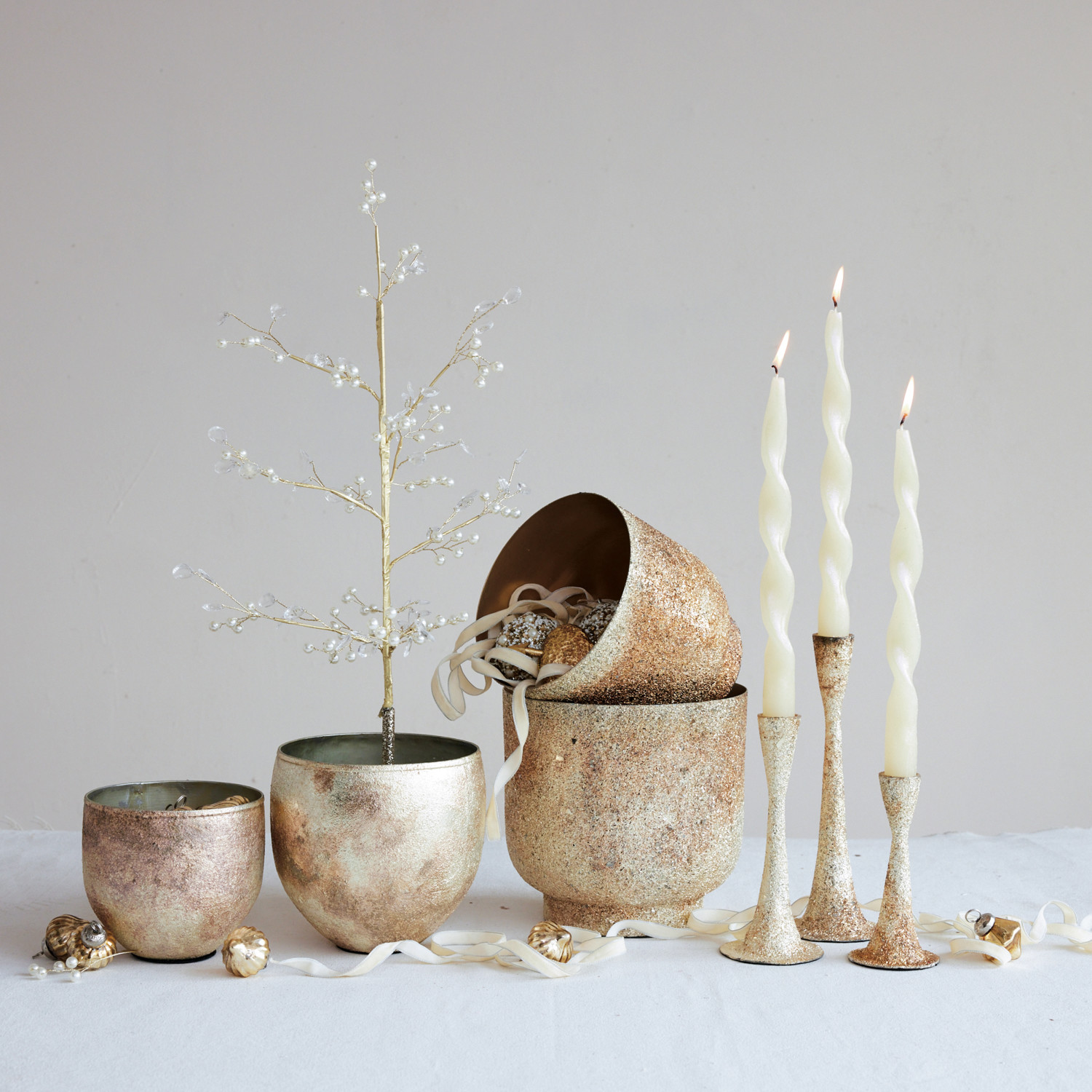 Catalog Name: 7" Round x 6-3/4"H & 6" Round x 6"H Metal Planters, Tarnished Silver Finish, Set of 2 (Holds 6" & 5" Pots)