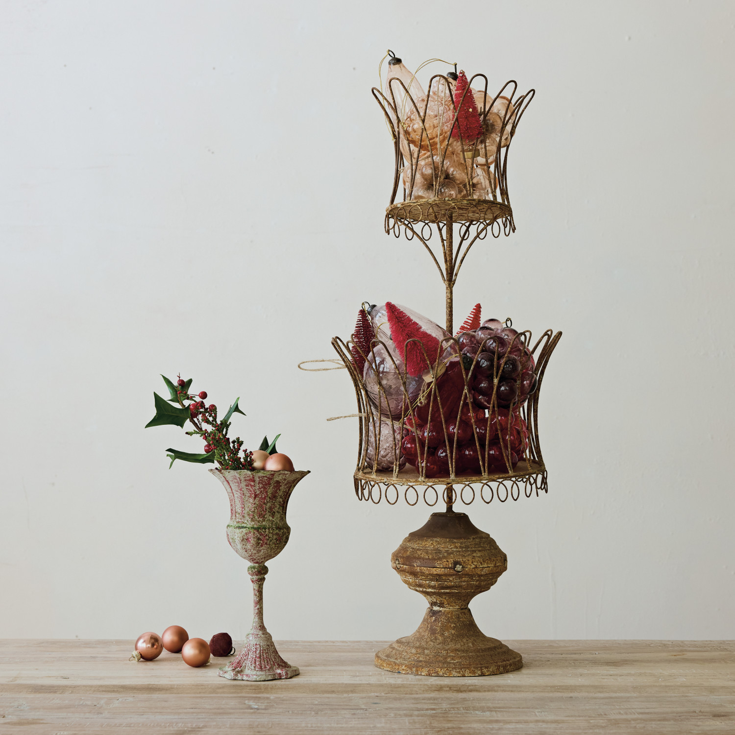 Catalog Name: 4-3/4" Round x 9-1/4"H Metal Urn, Heavily Distressed Finish, Red