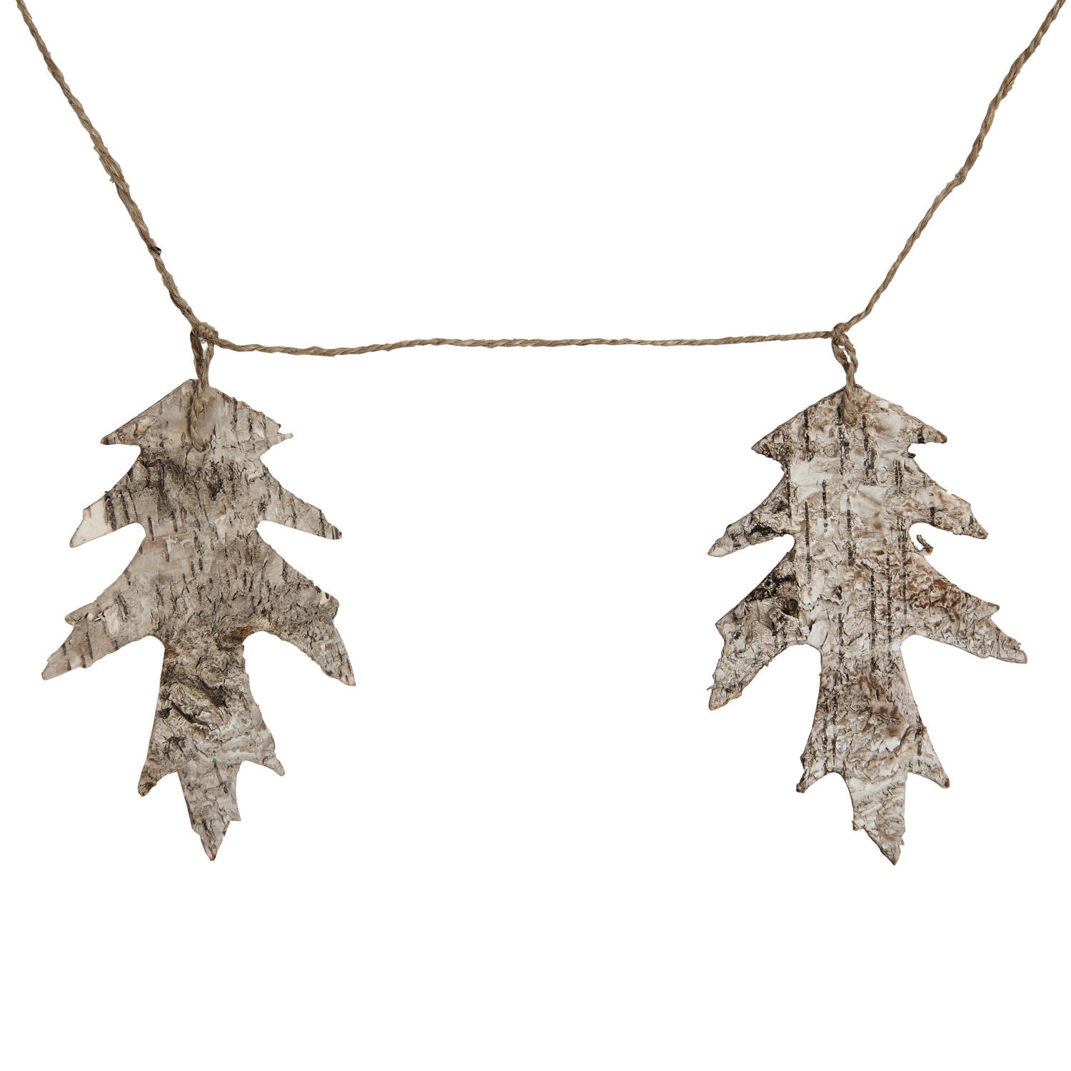 Catalog Name: 72"L x 5"H Birch Bark Oak Leaf Shaped Garland w/ Jute Cord, Natural
