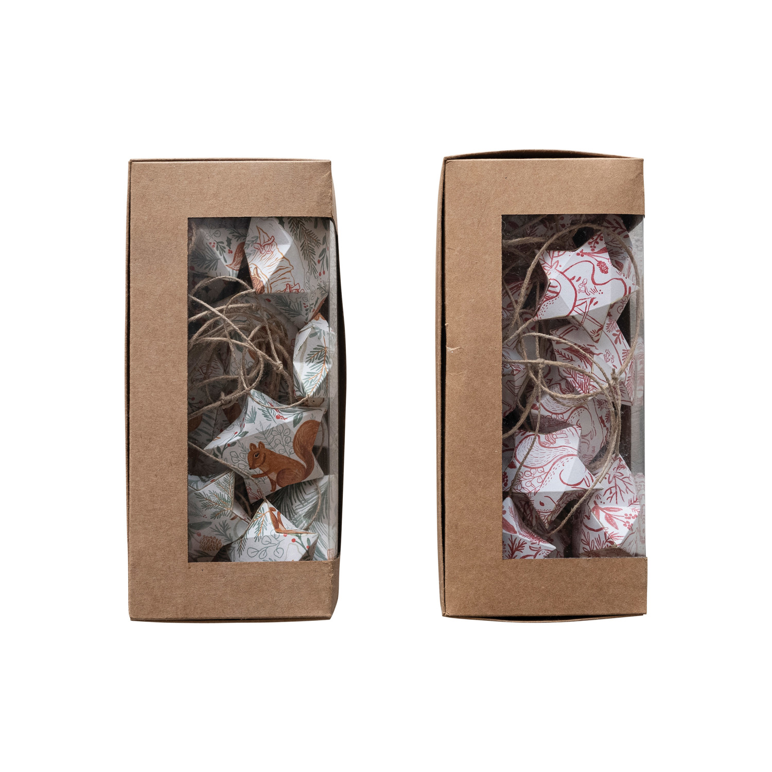 Catalog Name: 72"L x 7"H Printed Paper Star Garland w/ Woodland Flora/Fauna Pattern in Kraft Box, Multi Color, 2 Styles ©
