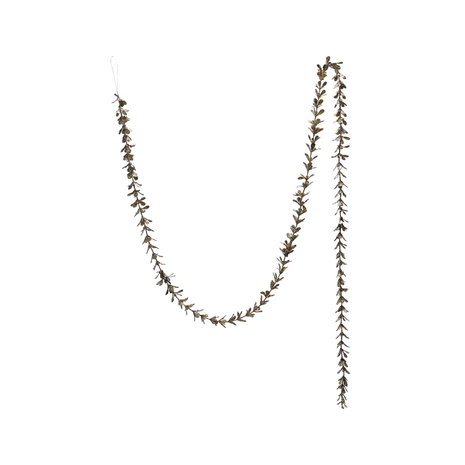 Catalog Name: 72"L x 1"H Faux Boxwood Garland w/ Glitter, Champagne Finish