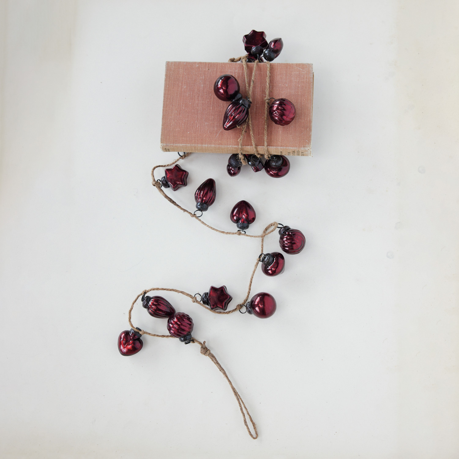 Embossed Mercury Glass Ornament Garland with Jute Cord, Burgundy