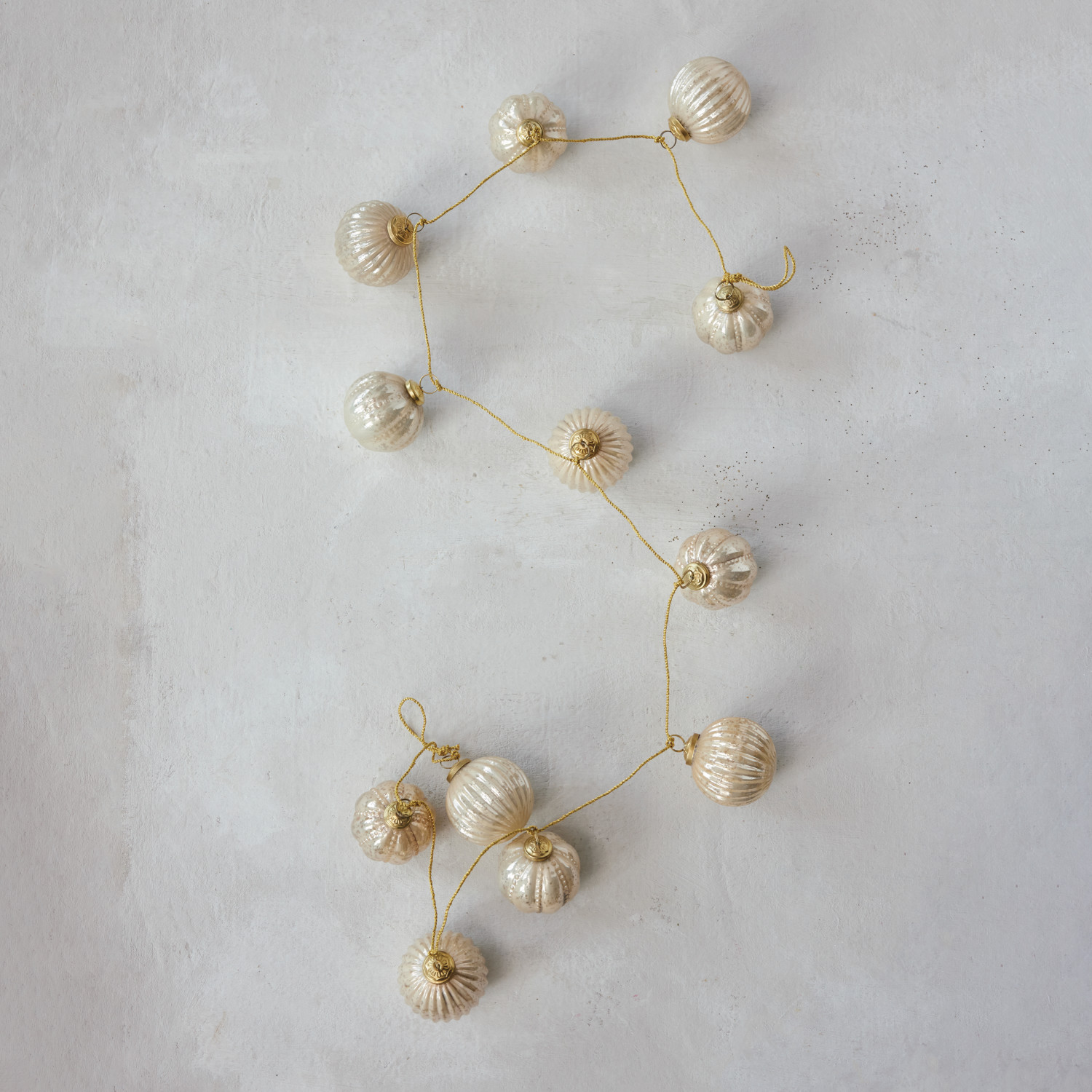 Embossed Mercury Glass Ornament Garland with Gold Cord