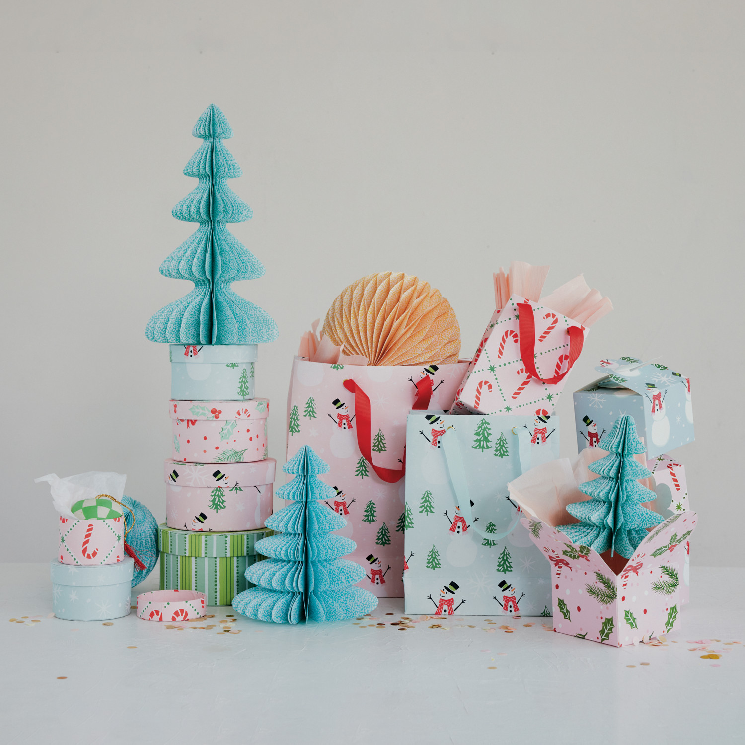 Catalog Name: 4" Square x 3"H Handmade Printed Recycled Paper Interlocking Gift Box w/ Holiday Pattern, Multi Color, 4 Styles ©