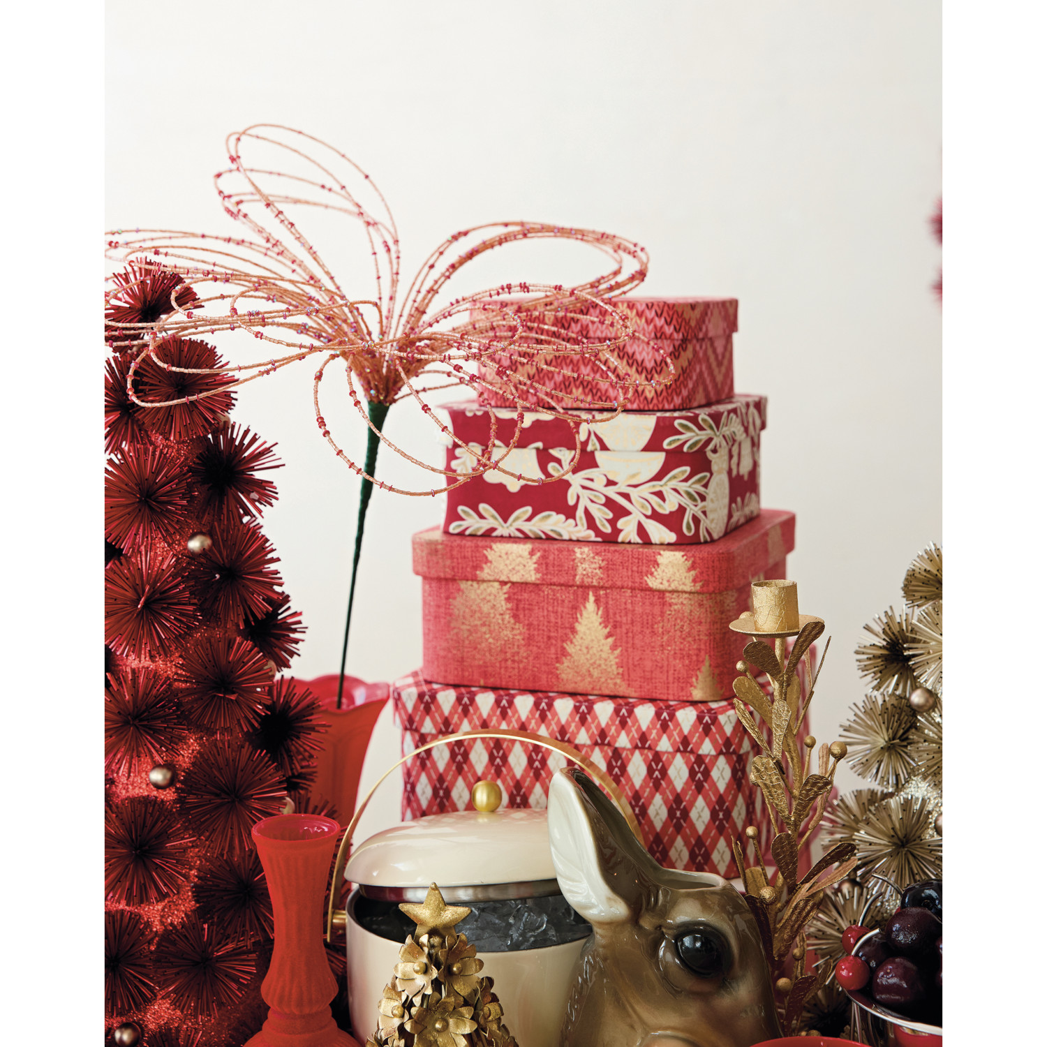 Catalog Name: 10-1/2" Square x 4-1/2"H, 9-1/2" Square x 4"H, 8-1/2" Square x 3-1/2"H, 7-1/2" Square x 3"H & 6" Square x 2-1/2"H Handmade Printed Recycled Paper Gift Boxes w/ Pattern, Multi Color, Set of 5