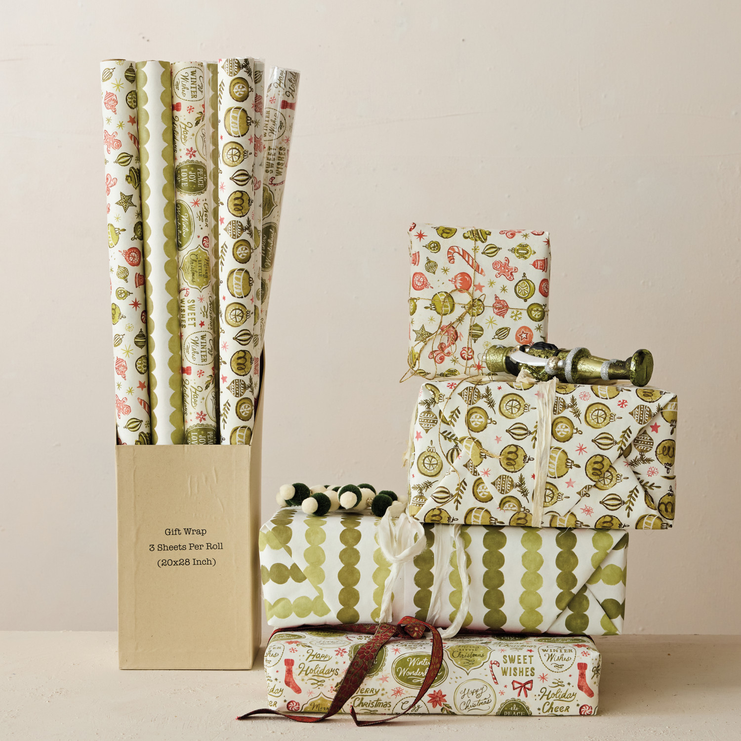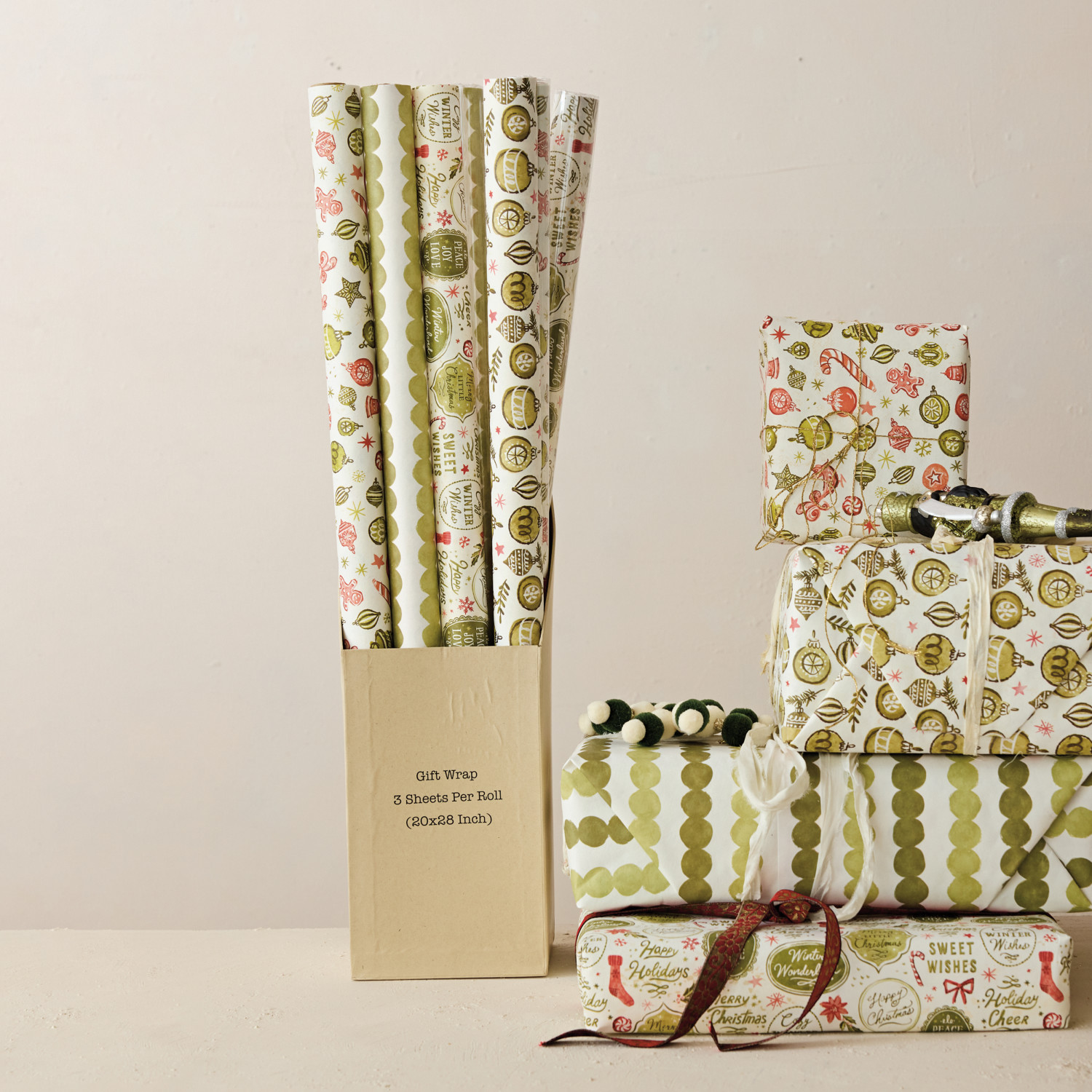 Wrapping Paper Sheets, Set of 12 in Box (4 Styles, 3 Rolls Per Style, 3 Sheets Per Roll) ©