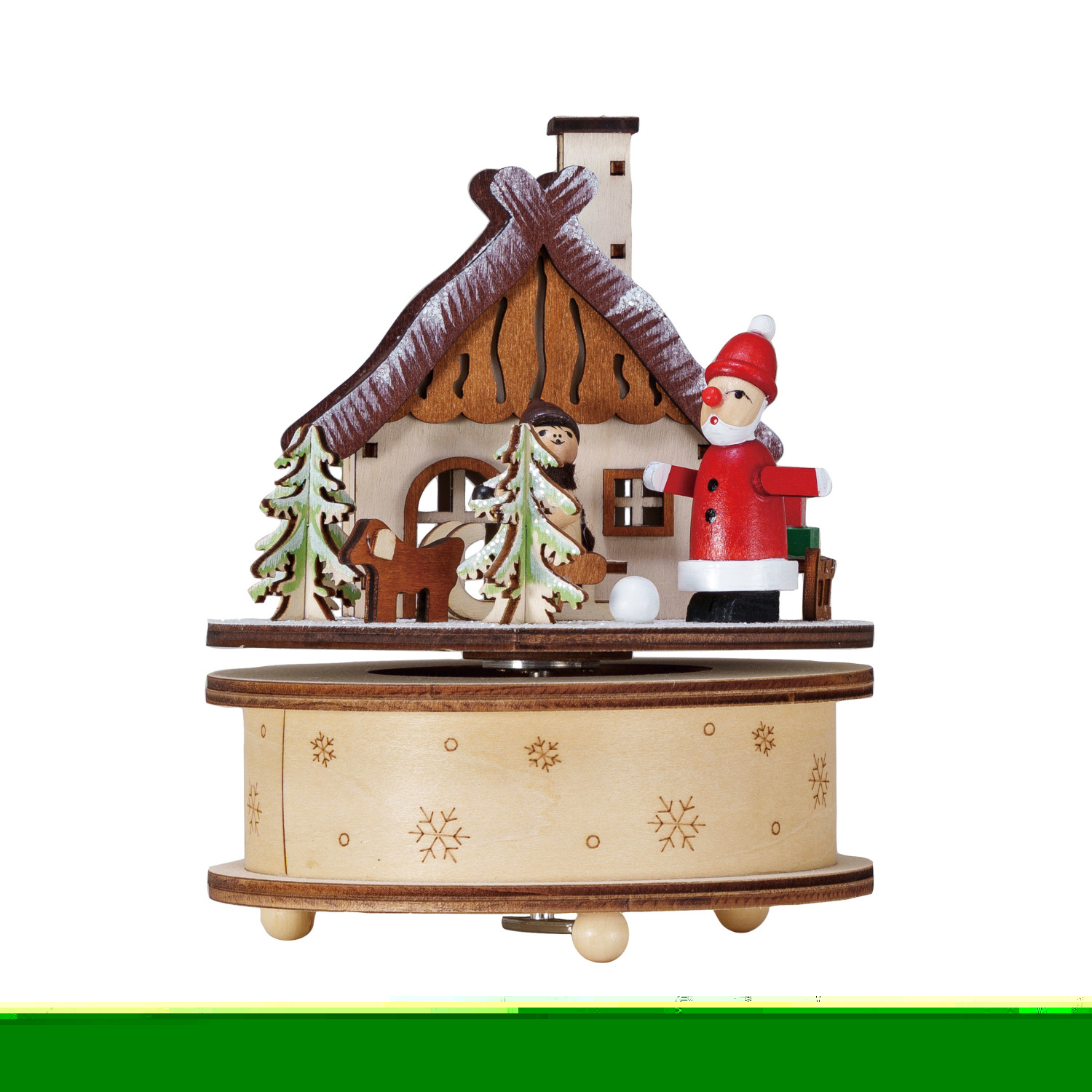 Catalog Name: 5-1/4" Round x 6-1/2"H Wood Wind-Up Santa's Cottage Music Box, Multi Color, Plays "Oh Christmas Tree"