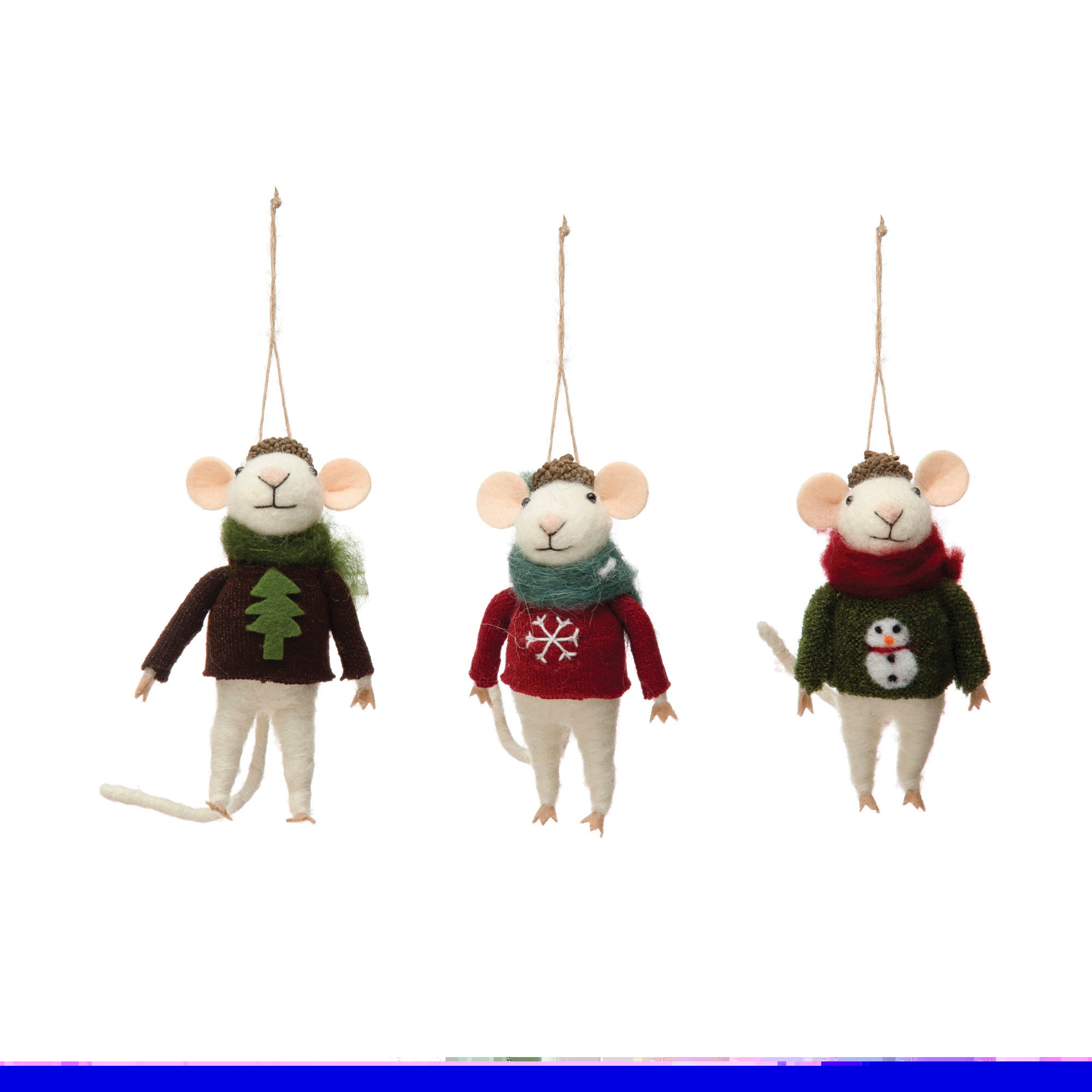 Catalog Name: 5"H Handmade Wool Felt Mouse in Hat & Sweater Ornament, Multi Color, 3 Styles