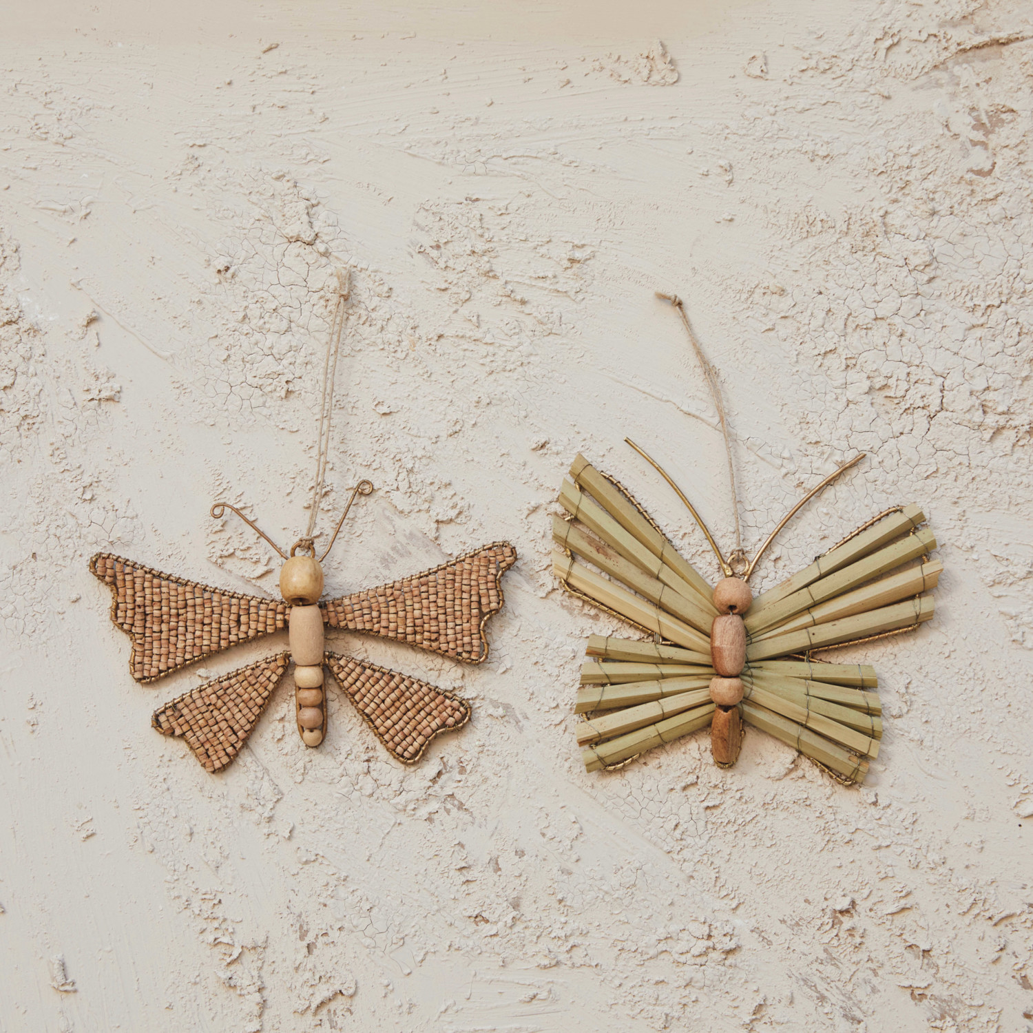 Catalog Name: 6"L - 6-3/4"L Handmade Mango Wood Bead & Bamboo Butterfly Ornament, Multi Color, 2 Styles