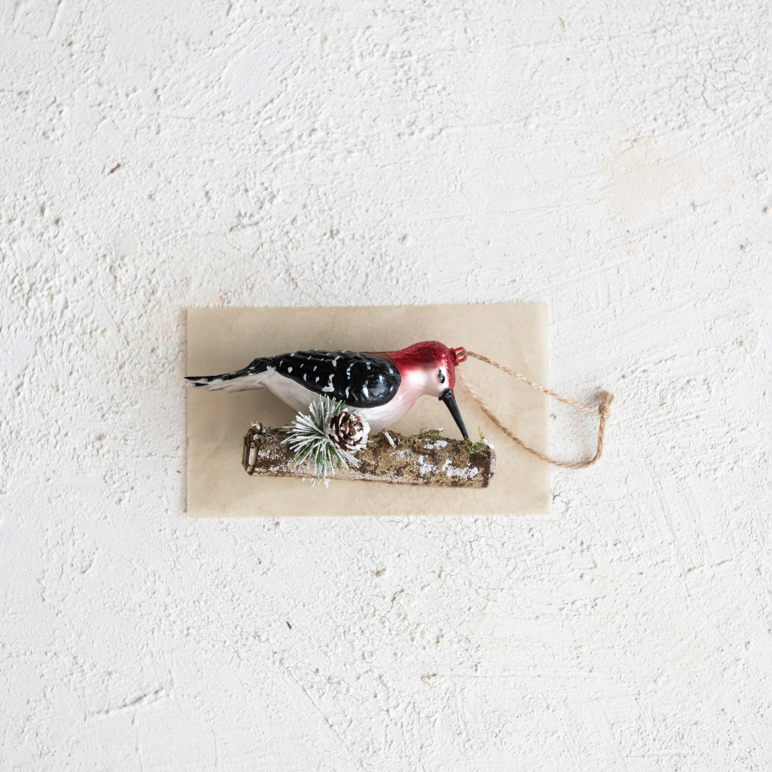 This ornament is a glass and resin creation that captures the lively essence of a woodpecker perched on a branch, complete with a glittery multicolor finish that brings the bird's plumage to life. It measures 2.0 inches in length, 2.5 inches in width, and 5 inches in height, offering a perfect size for visibility without overwhelming the tree. Display it anywhere with the string, bringing the serene beauty of a forest into the holiday festivities. This is a perfect choice for anyone who loves graceful and elegant home decor. A glass woodpecker on a branch ornament, adorned with glitter and a vibrant multicolor design. An ornament that adds a touch of wilderness charm to any holiday decor, perfect for bird watchers and nature lovers. Perfect for enhancing a Christmas tree or as a standout piece in a nature-themed ornament collection.
