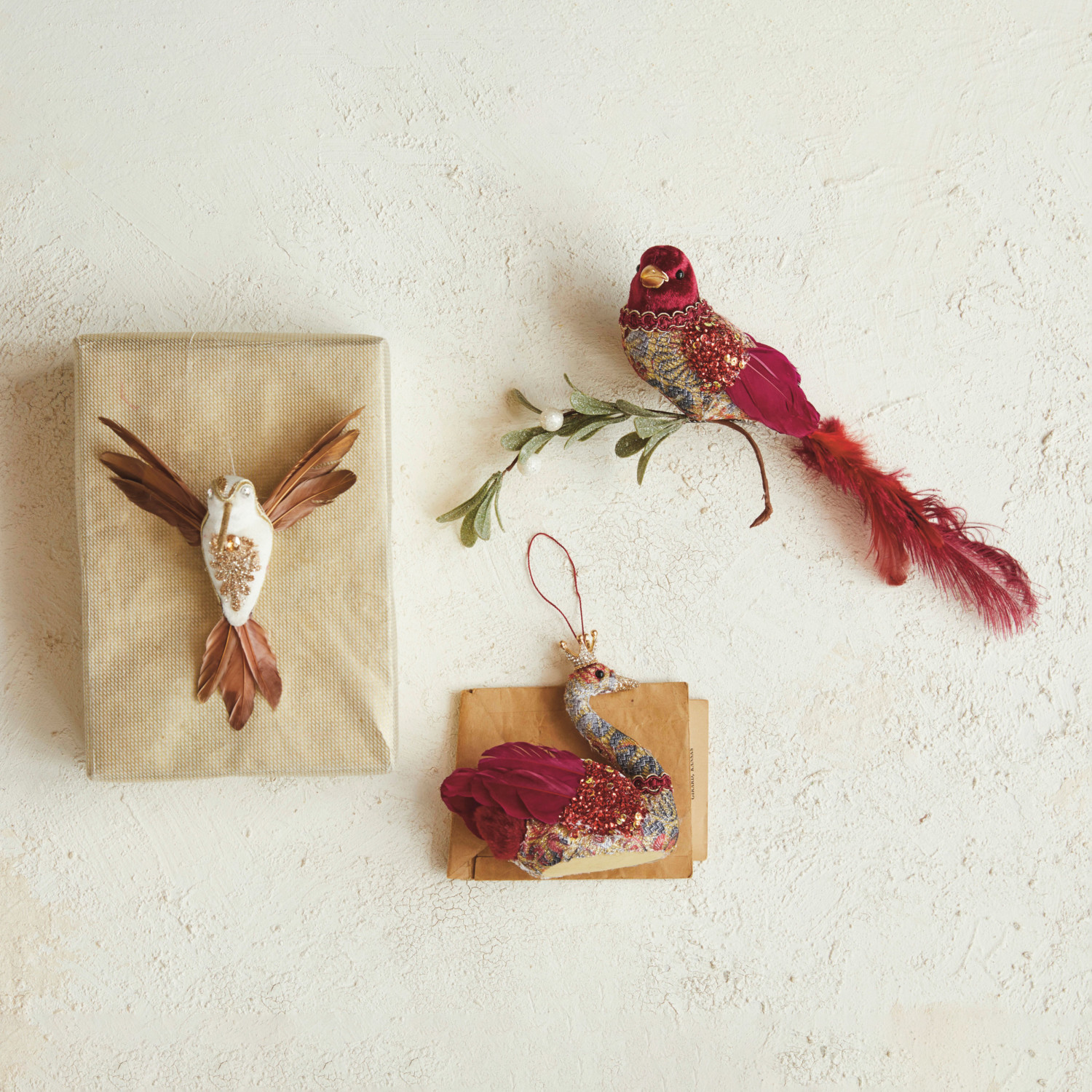 Catalog Name: 4-1/4"L x 2-3/4"W x 5"H Fabric, Foam & Feather Swan Ornament w/ Crown, Glitter & Sequins, Multi Color