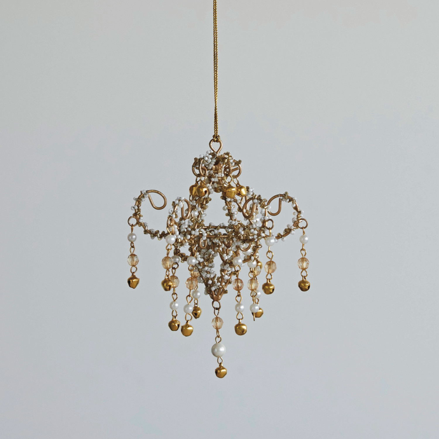 Catalog Name: 6"H Handmade Metal, Glass & Acrylic Beaded Chandelier Ornament, Gold Finish