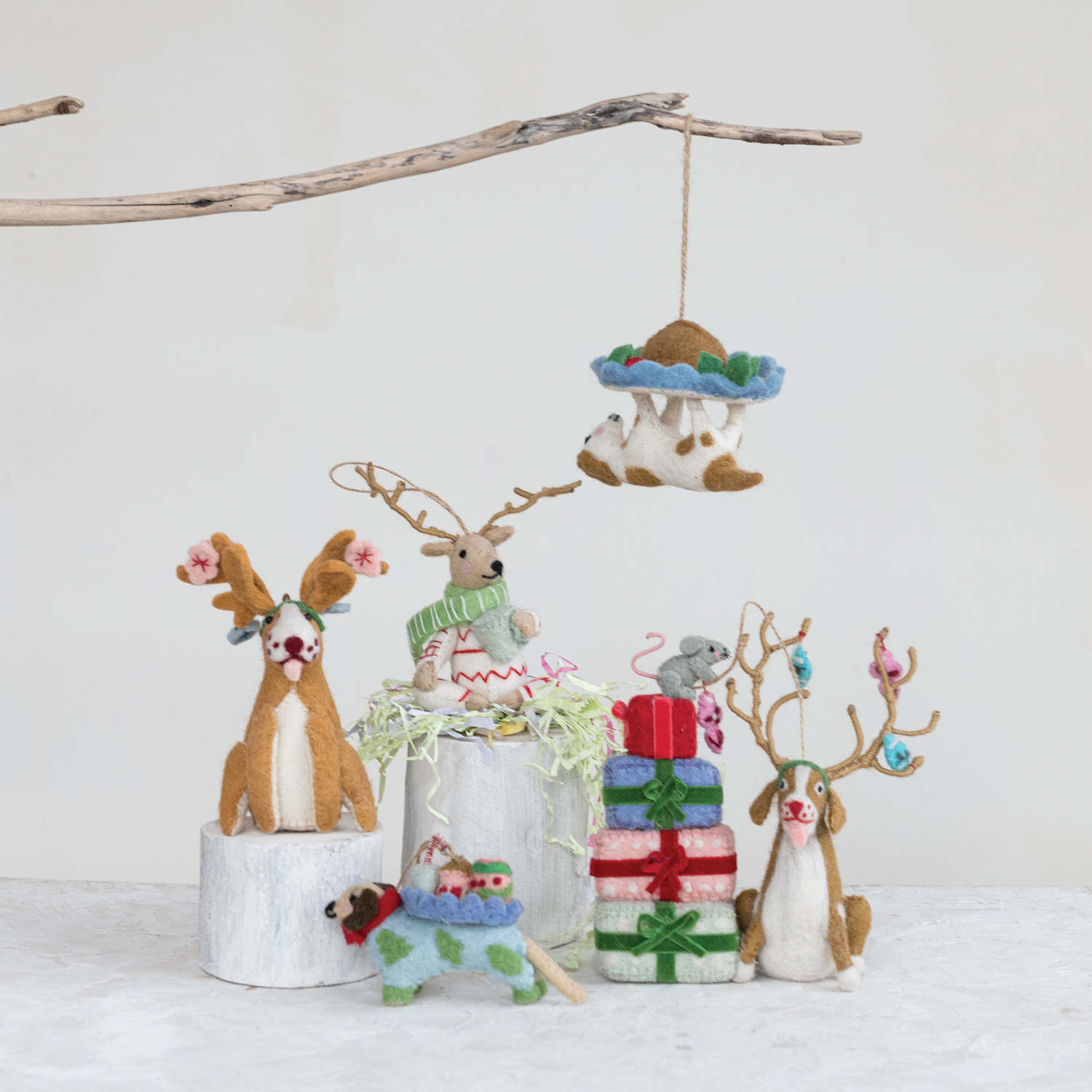 Handmade Wool Felt Dog Ornament with Holiday Treats, 4 Styles ©
