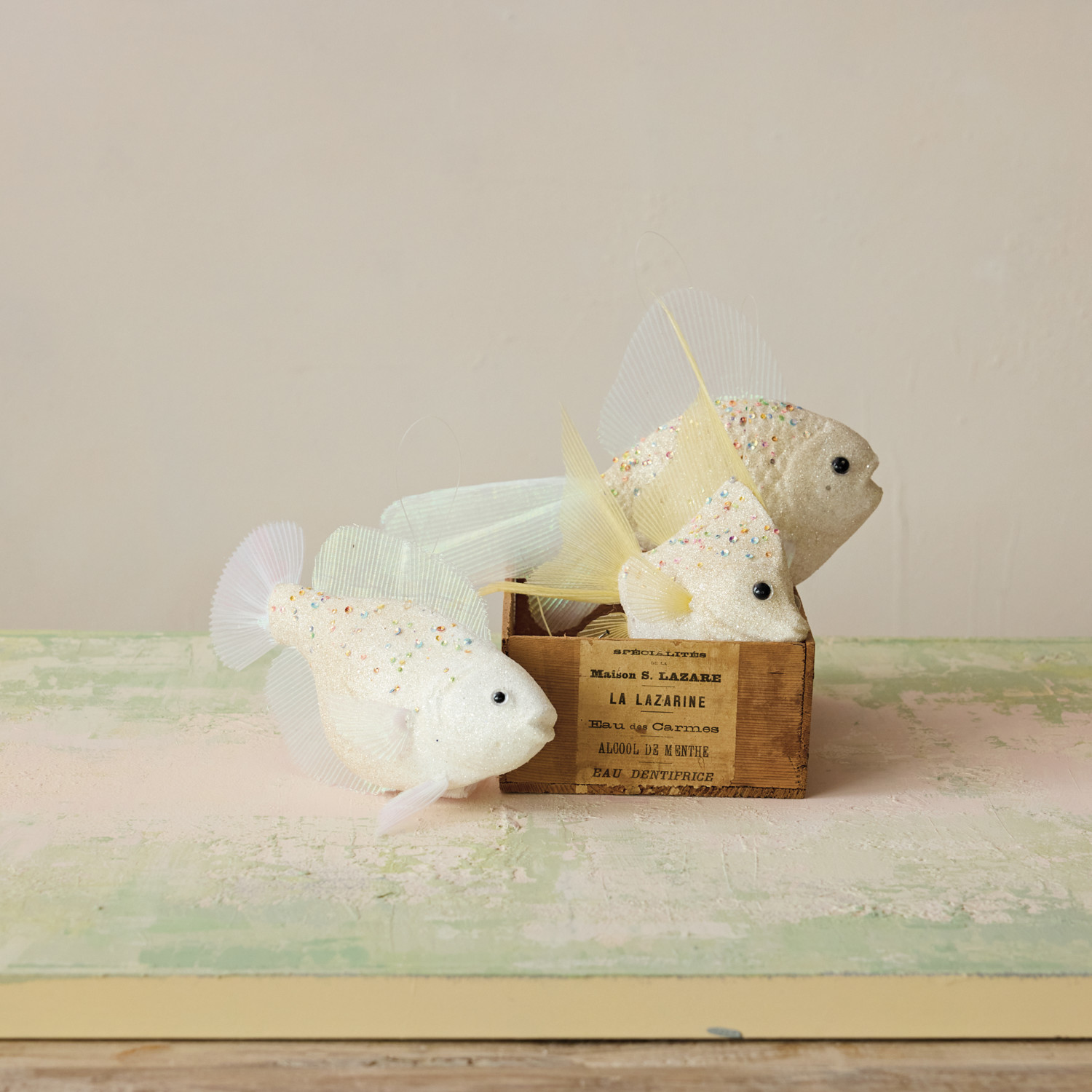 Catalog Name: 10-1/4"L - 11-3/4"L Foam Fish Ornament w/ Glitter, Sequins & Beads, Multi Color, 3 Styles