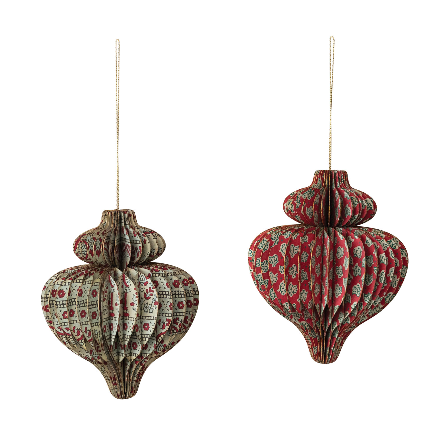Handmade Recycled Block Printed Paper Folding Honeycomb Finial Ornament, 2 Styles