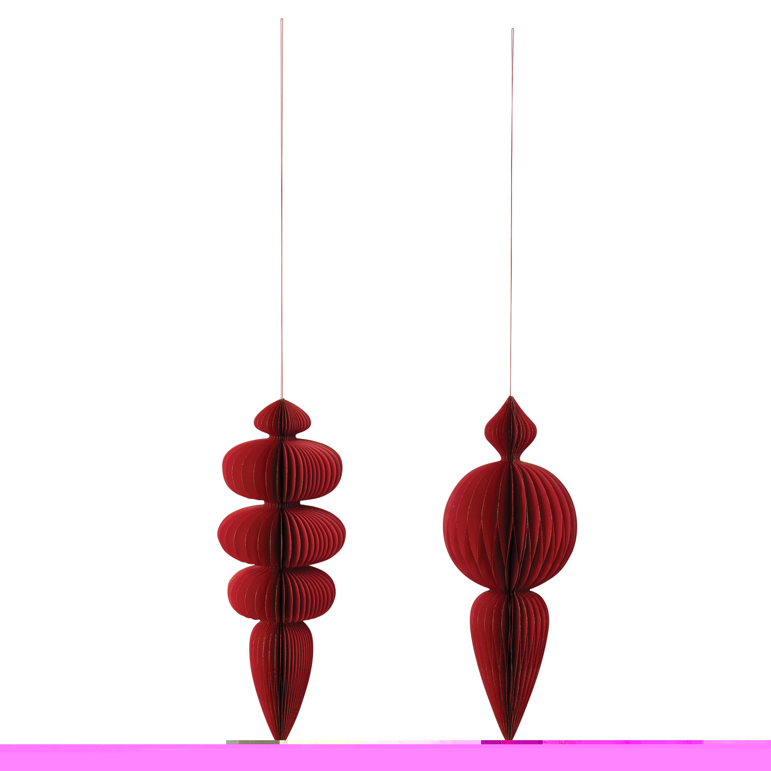 Catalog Name: 10" Round x 26"H Oversized Handmade Recycled Paper Folding Honeycomb Finial Ornament w/ Gold Glitter Edges, Red, 2 Styles