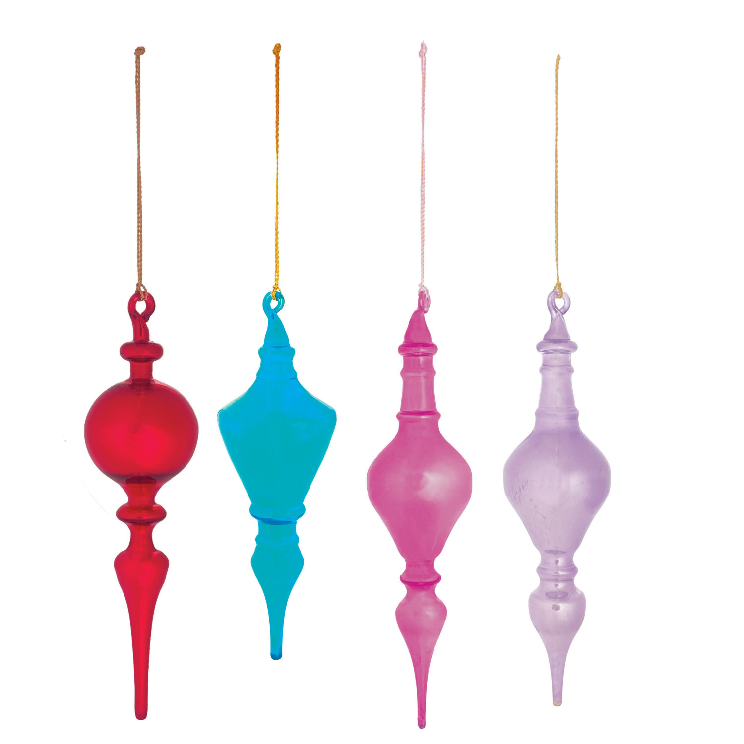Catalog Name: 6-1/4"H - 7-1/4"H Glass Finial Ornament, 4 Styles