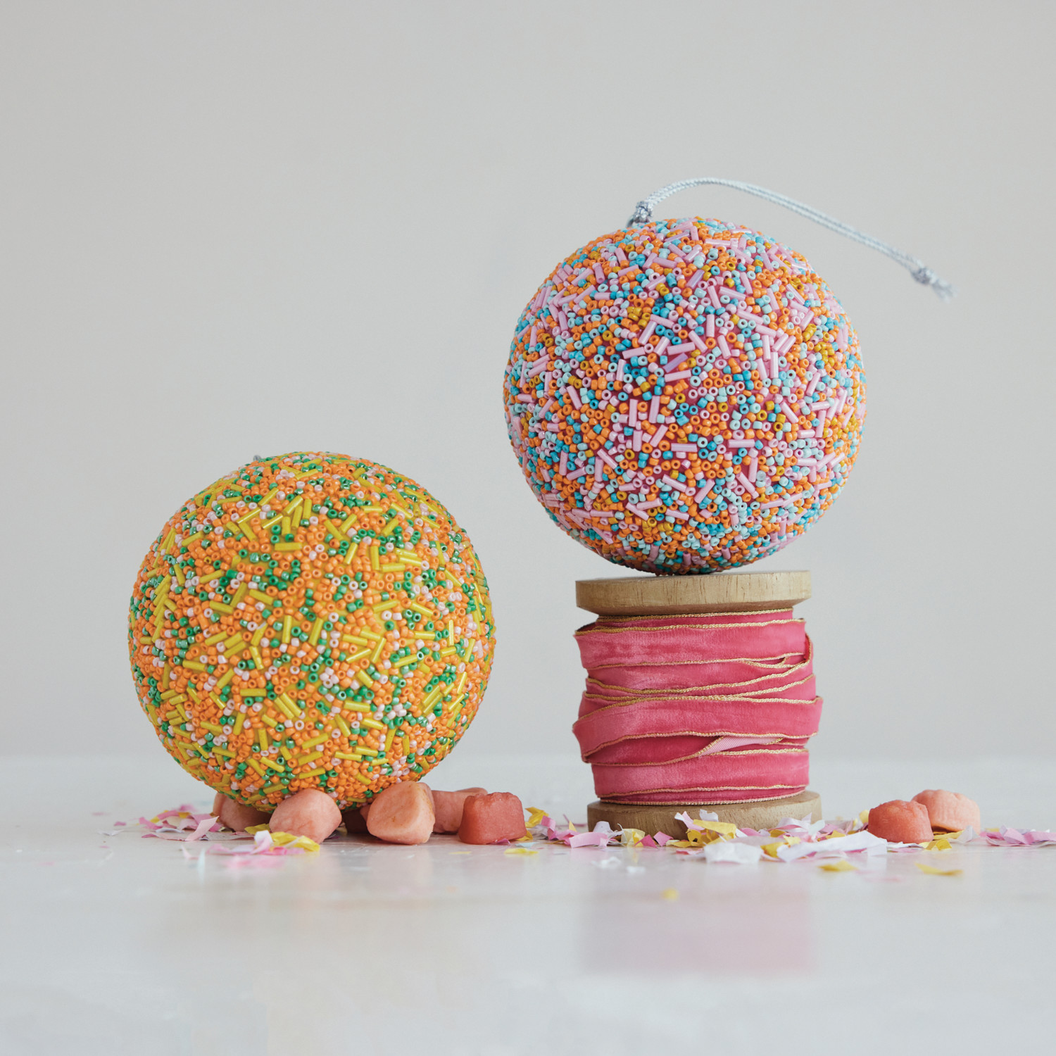 Handmade Plastic & Glass Beaded Ball Ornament, 2 Styles