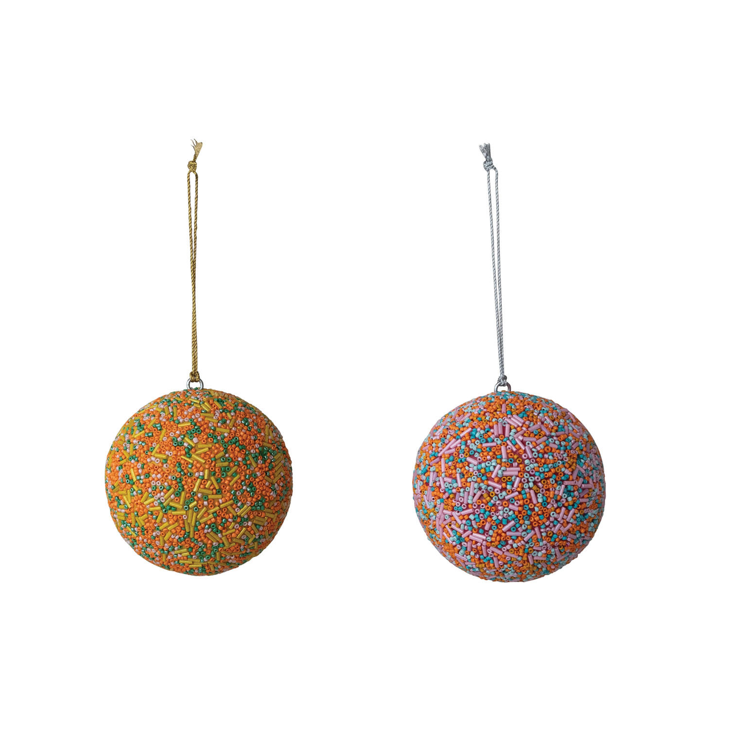 Catalog Name: 3-3/4" Round Handmade Plastic & Glass Beaded Ball Ornament, Multi Color, 2 Styles