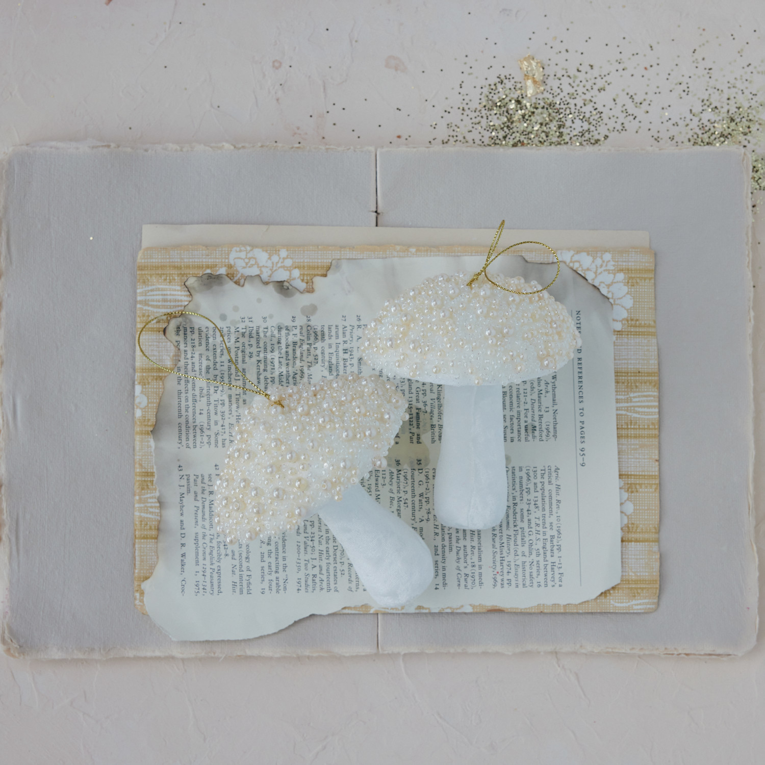 Foam Mushroom Ornament with Faux Pearl Beads & Glitter & Gold Finish, 2 Styles