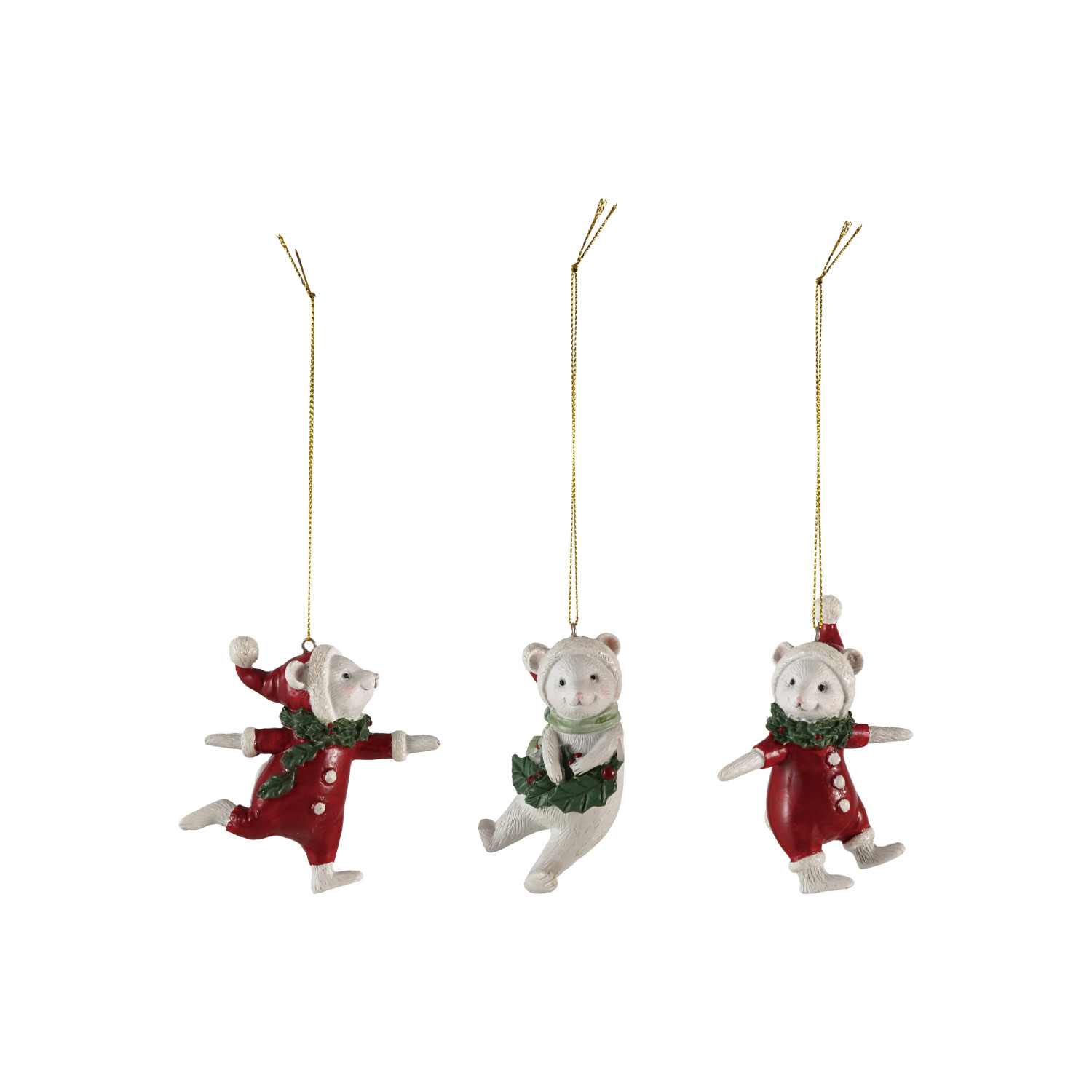 Catalog Name: 3-1/4"H Resin Mouse Ornament, White, Red & Green, 3 Styles