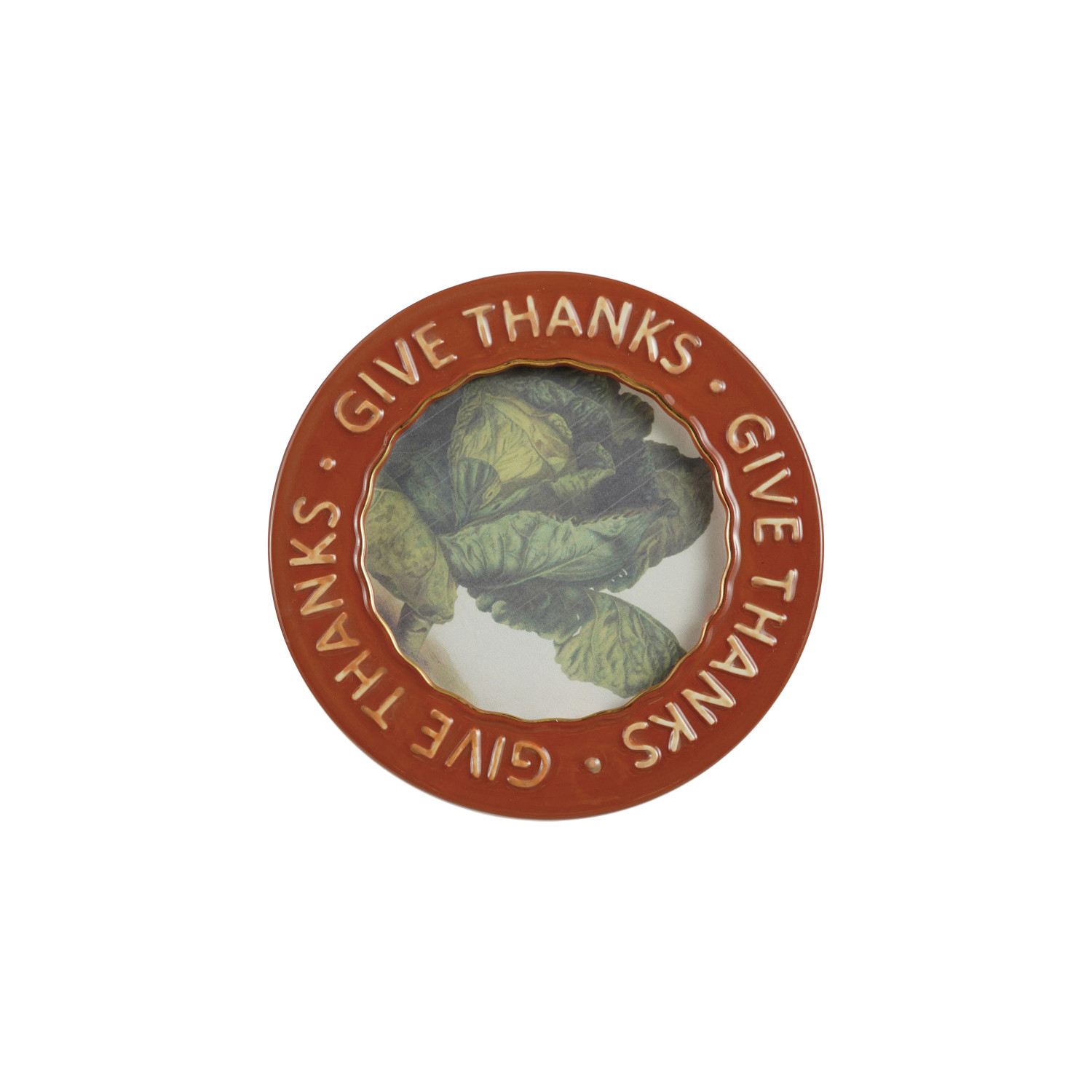 Catalog Name: 6" Round Hand-Painted Embossed Stoneware Photo Frame "Give Thanks", Brown & Beige (Holds 4" x 4" Photo)