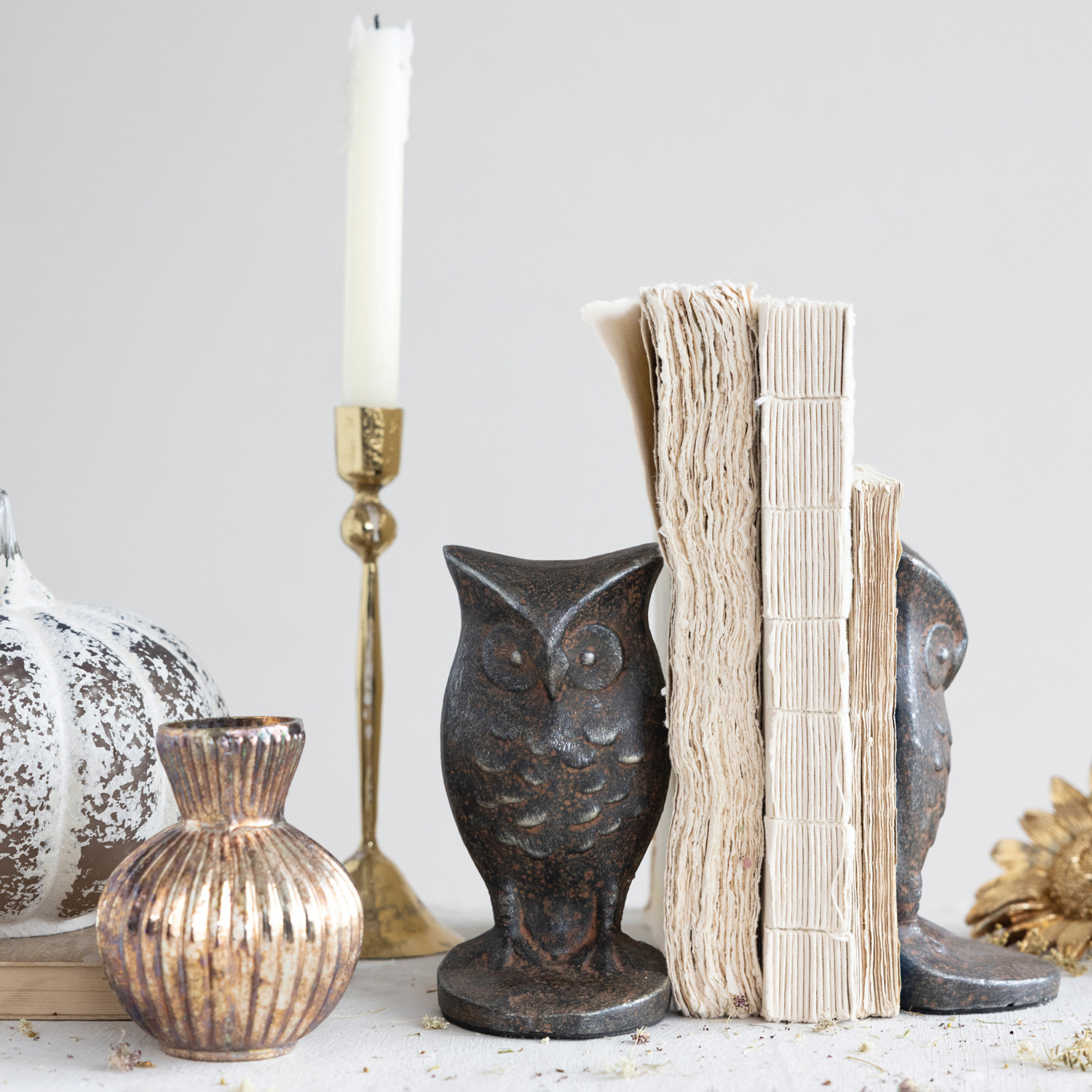 Cast Iron Owl Shaped Bookends, Set of 2