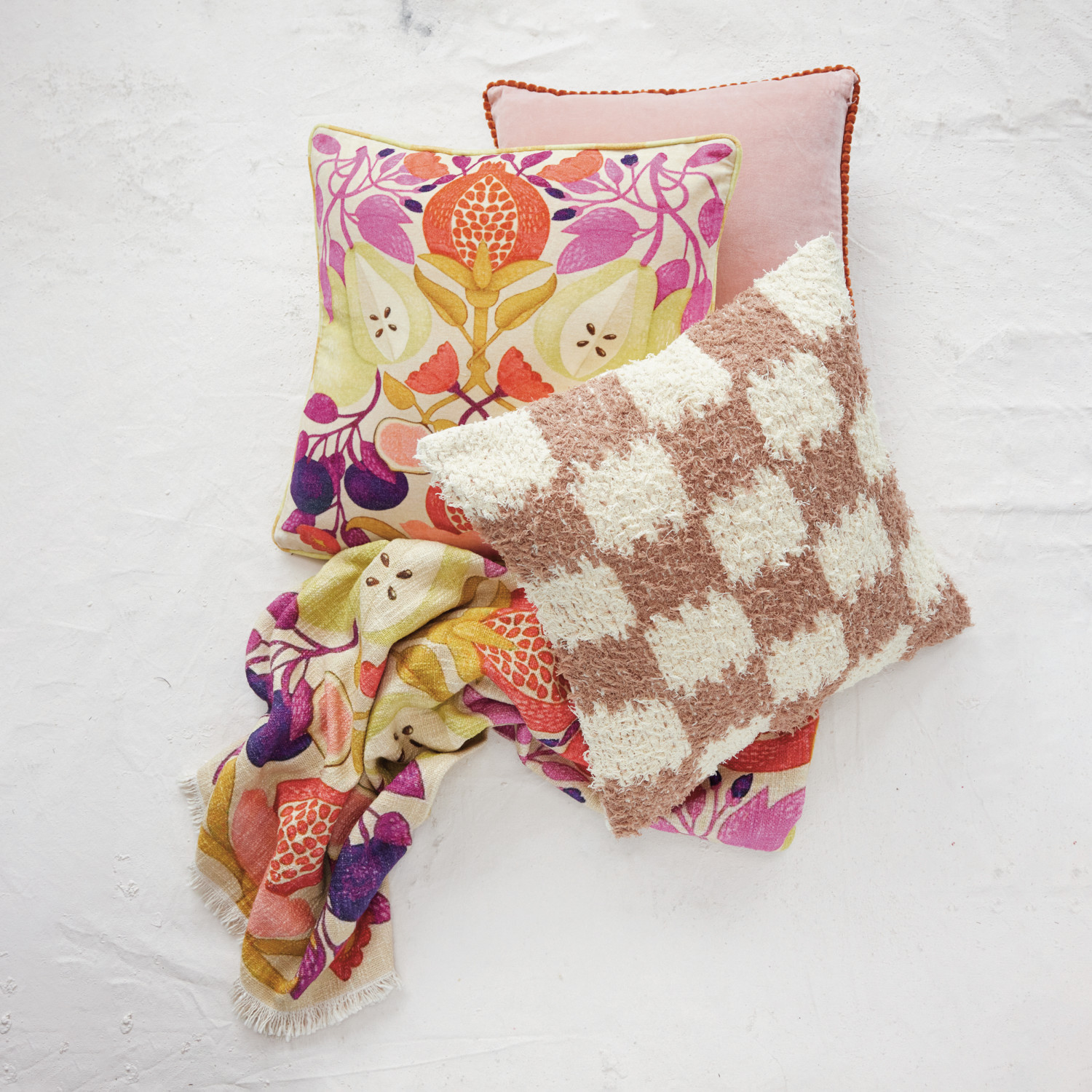 Catalog Name: 20" Square Cotton Slub Pillow w/ Check Pattern, Natural & Brown