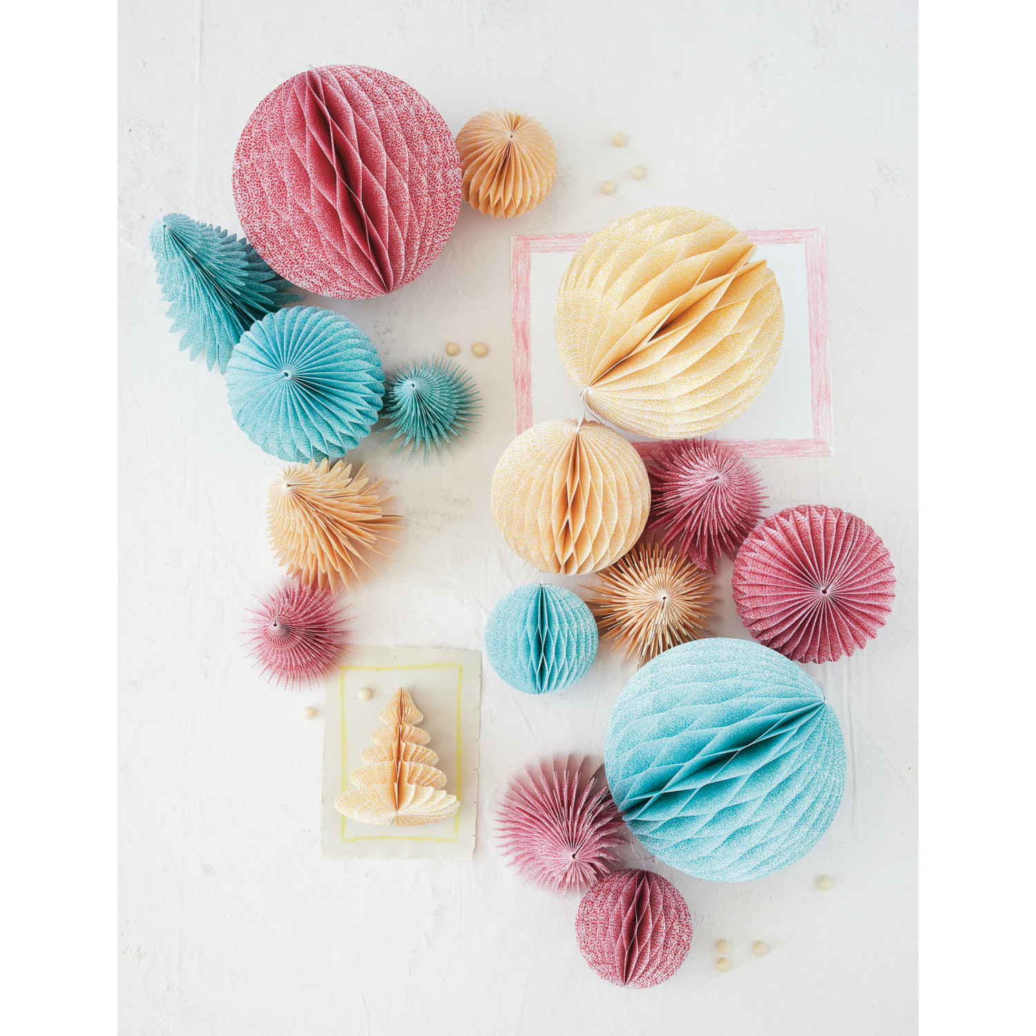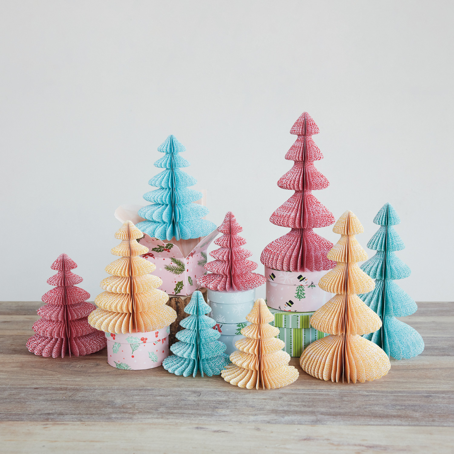 Handmade Printed Recycled Paper Folding Honeycomb Tree with Dot Pattern, 3 Colors