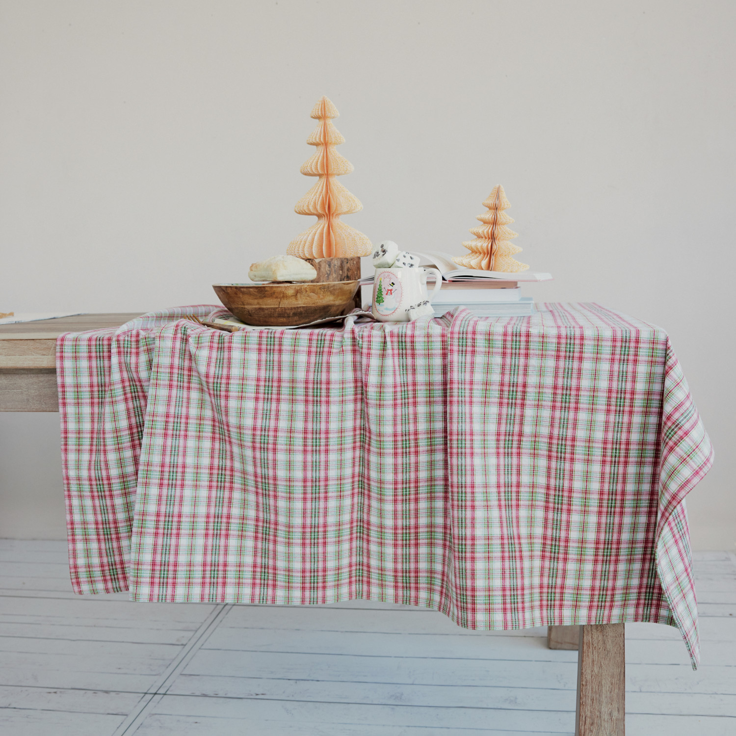 Catalog Name: 84"L x 60"W Woven Cotton Table Cloth w/ Plaid Pattern, Multi Color