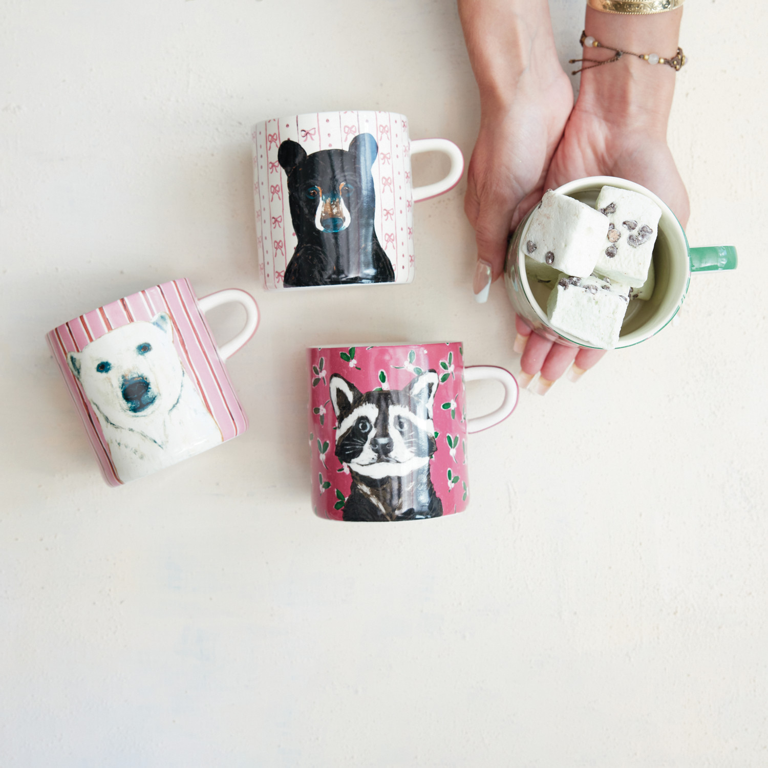 16 oz. Stoneware Mug with Holiday Pattern & Animal, 4 Styles ©