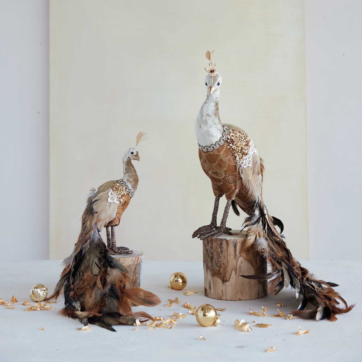 Foam & Fabric Peacock with Sequins & Feathers, Brown