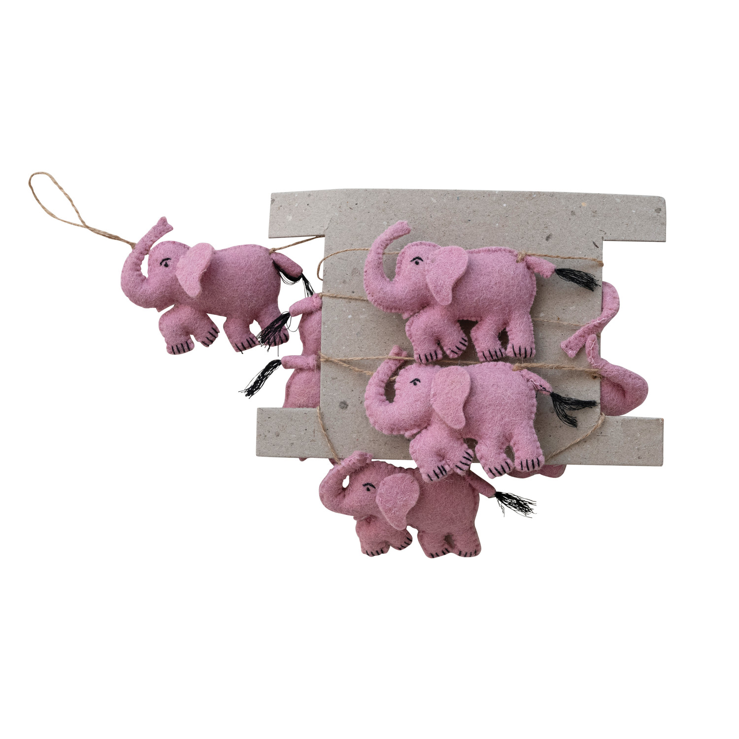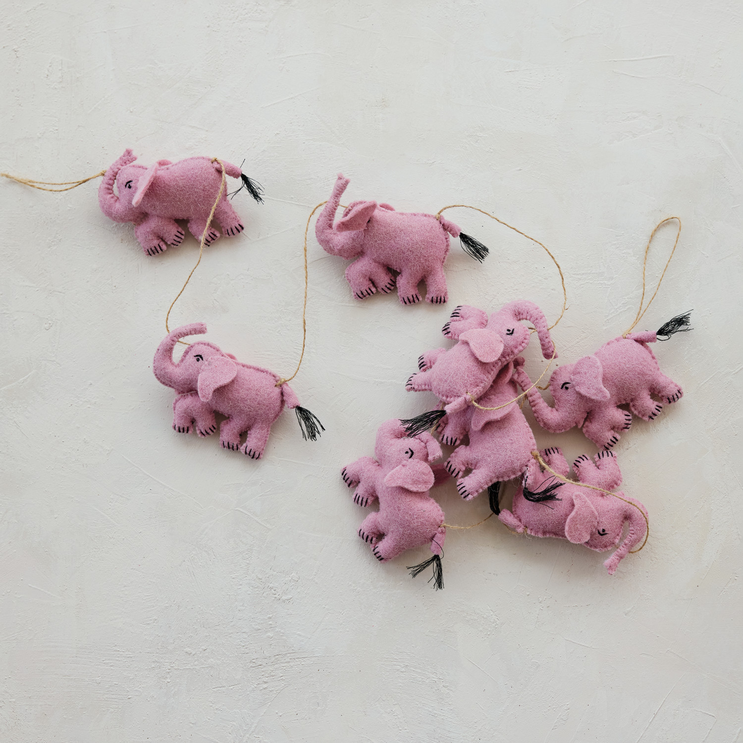 Catalog Name: 72"L x 3"H Handmade Wool Felt Pink Elephant Garland w/ Jute Cord ©