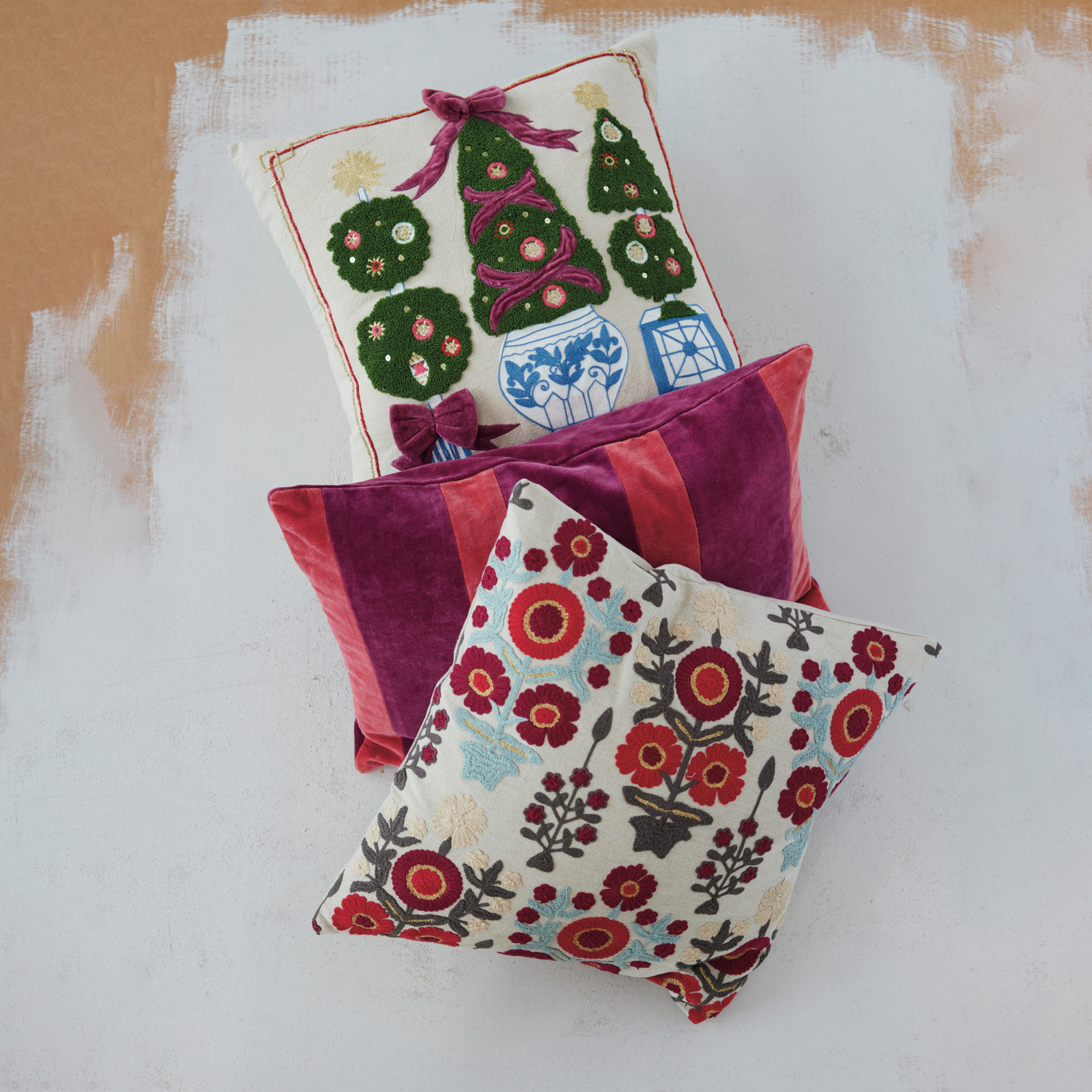 Cotton Velvet Striped Lumbar Pillow, Burgundy & Rose Color