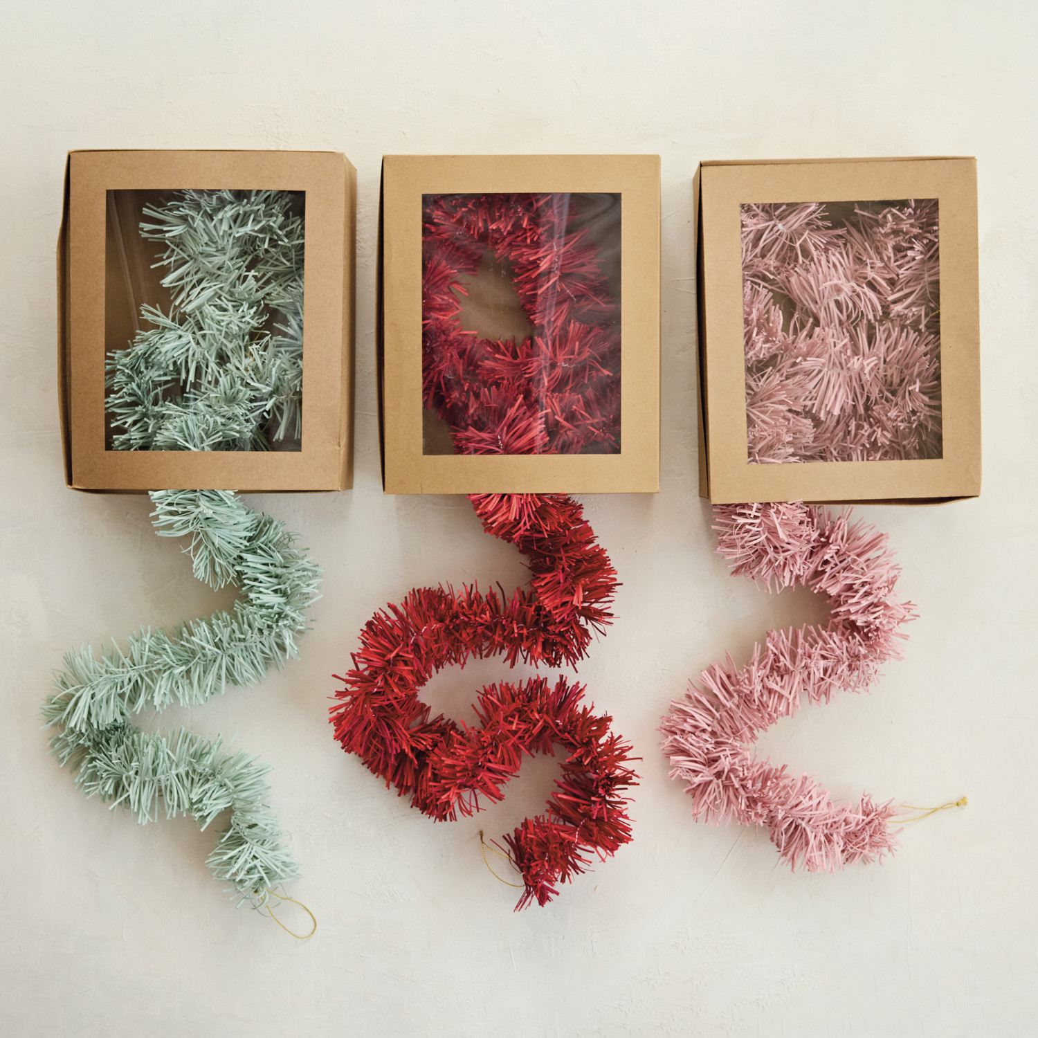 Catalog Name: 72"L x 3"H Handmade Recycled Paper Tinsel Garland in Kraft Box, Pink