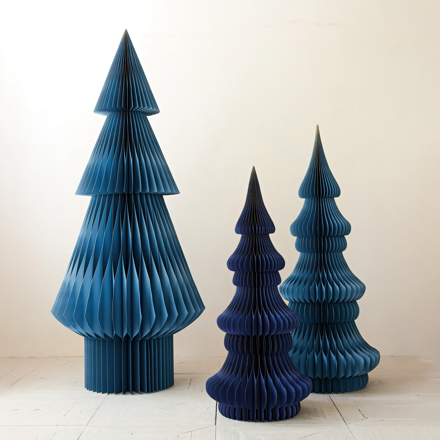 Handmade Recycled Paper Folding Honeycomb Tree with Gold Glitter Edges, Blue, KD