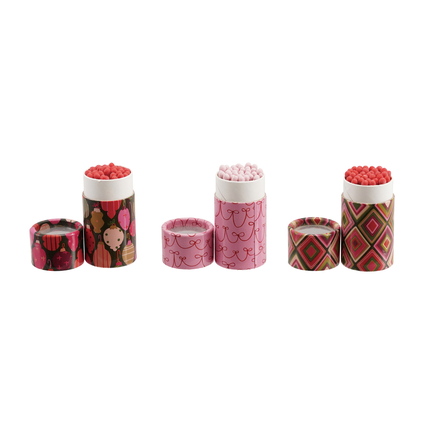 Safety Matches in Tube Matchbox with Holiday Pattern, 3 Styles ©