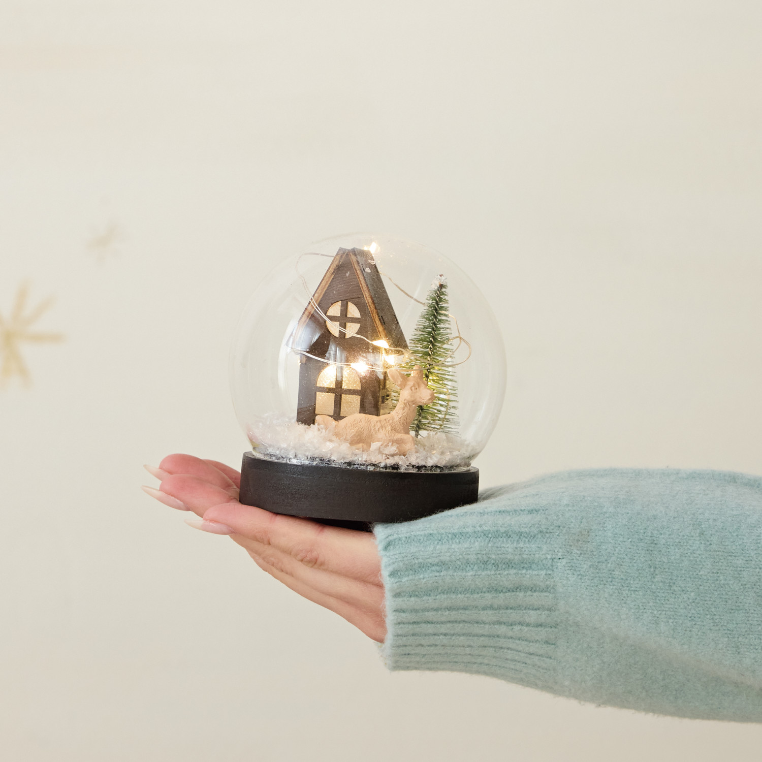 Glass Snow Globe with Cabin Scene & LED Light