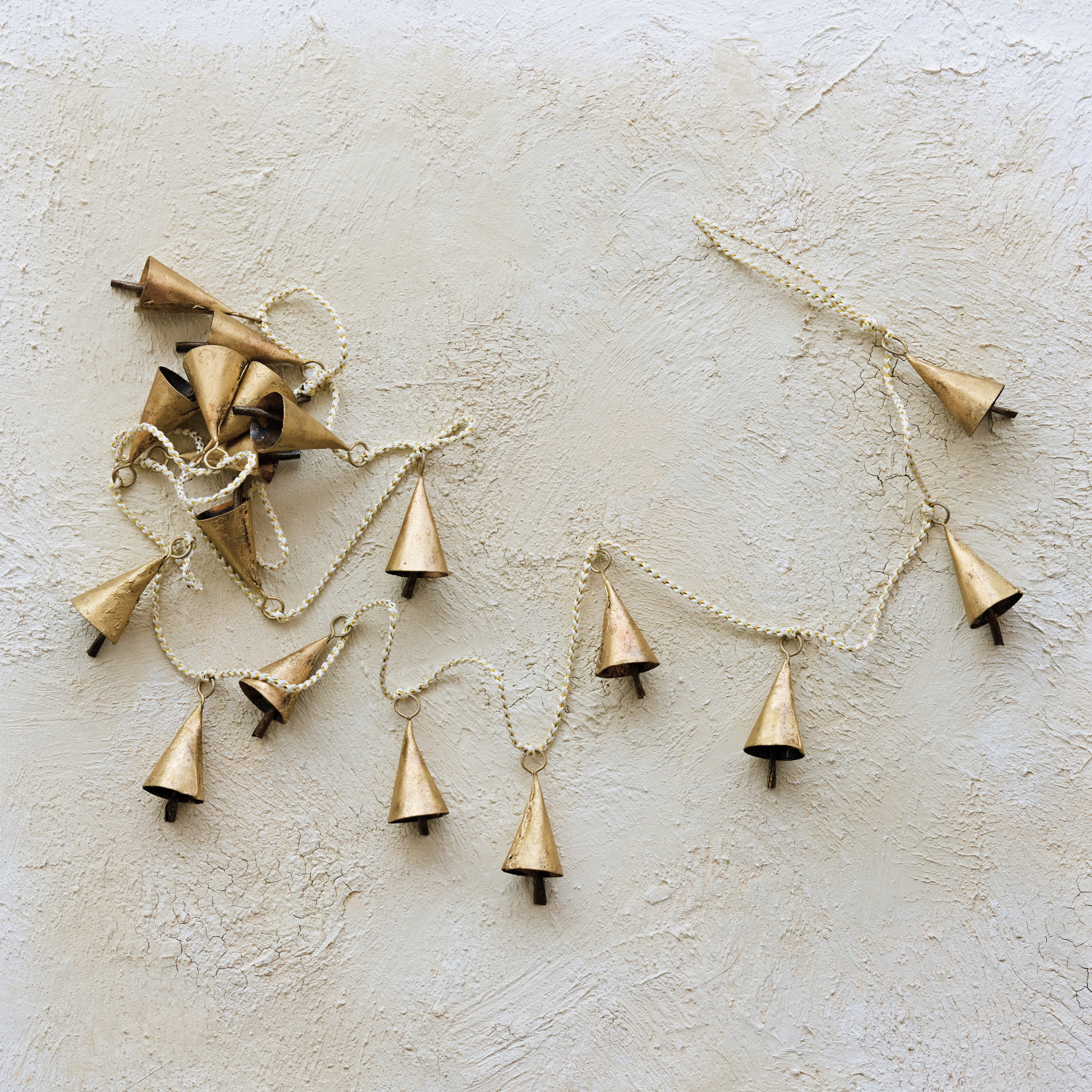 Metal Bell Garland with White & Gold Cord, Gold Finish
